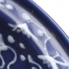 Rund dybde med slibeindretning i hvid mod blå bund. Diameter 27,5 cm. Højde 10,5 cm.