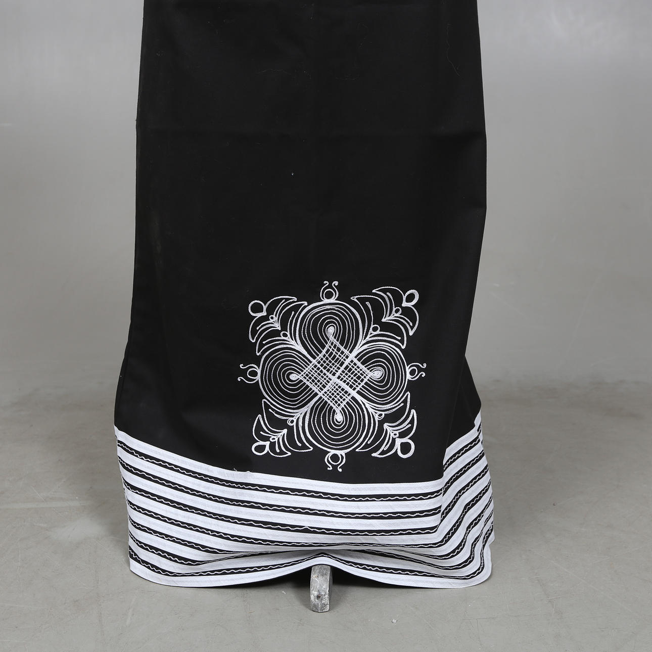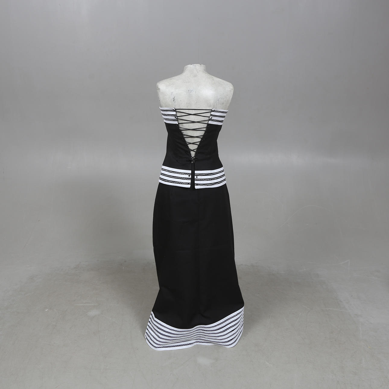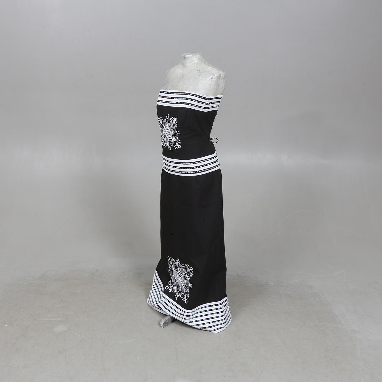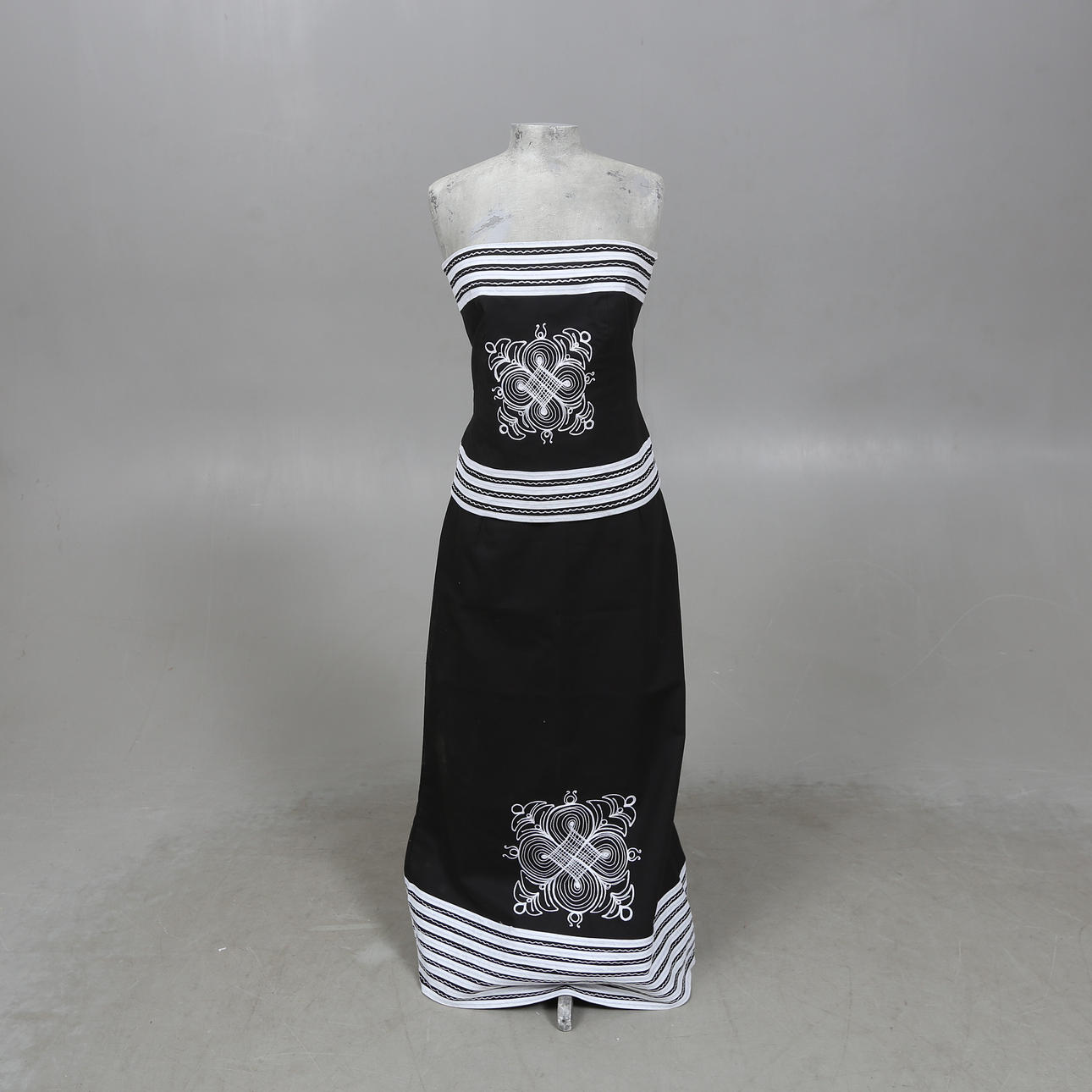 Bryststørrelse ca. 38 cm. Nederdellængde ca. 102 og taljeomkreds ca. 38 cm.