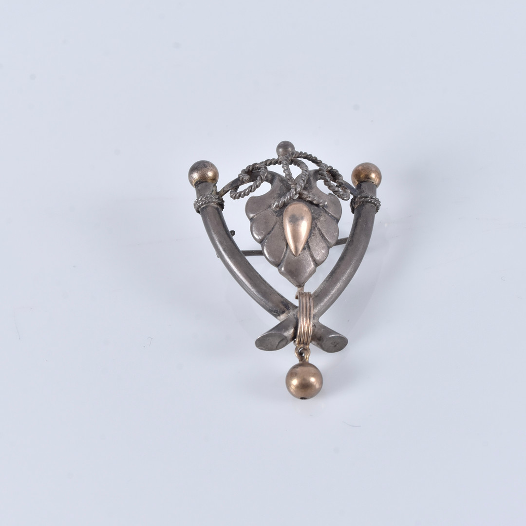 4219404. ÆLDRE BROCHE, sølv, delvis forgyldt.
