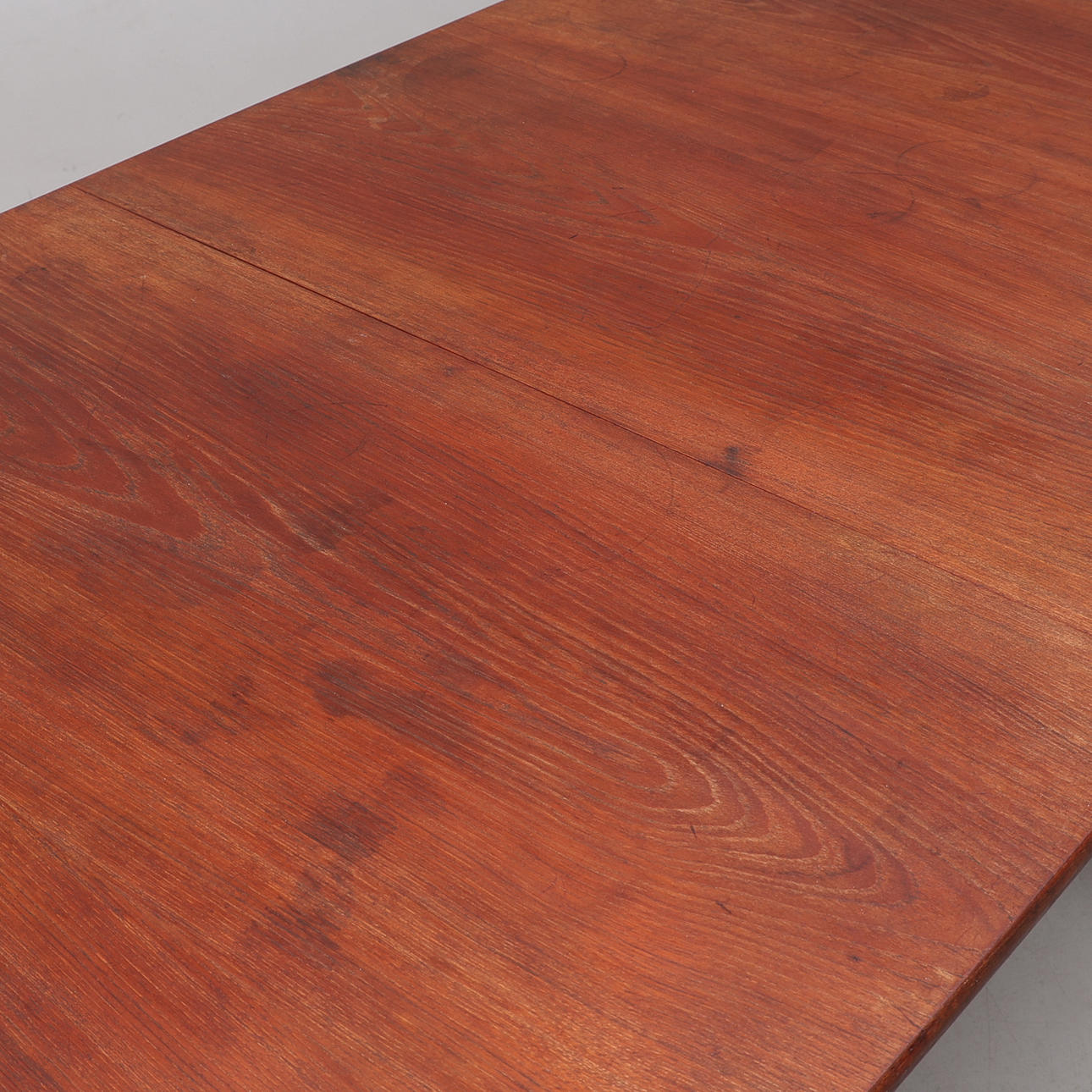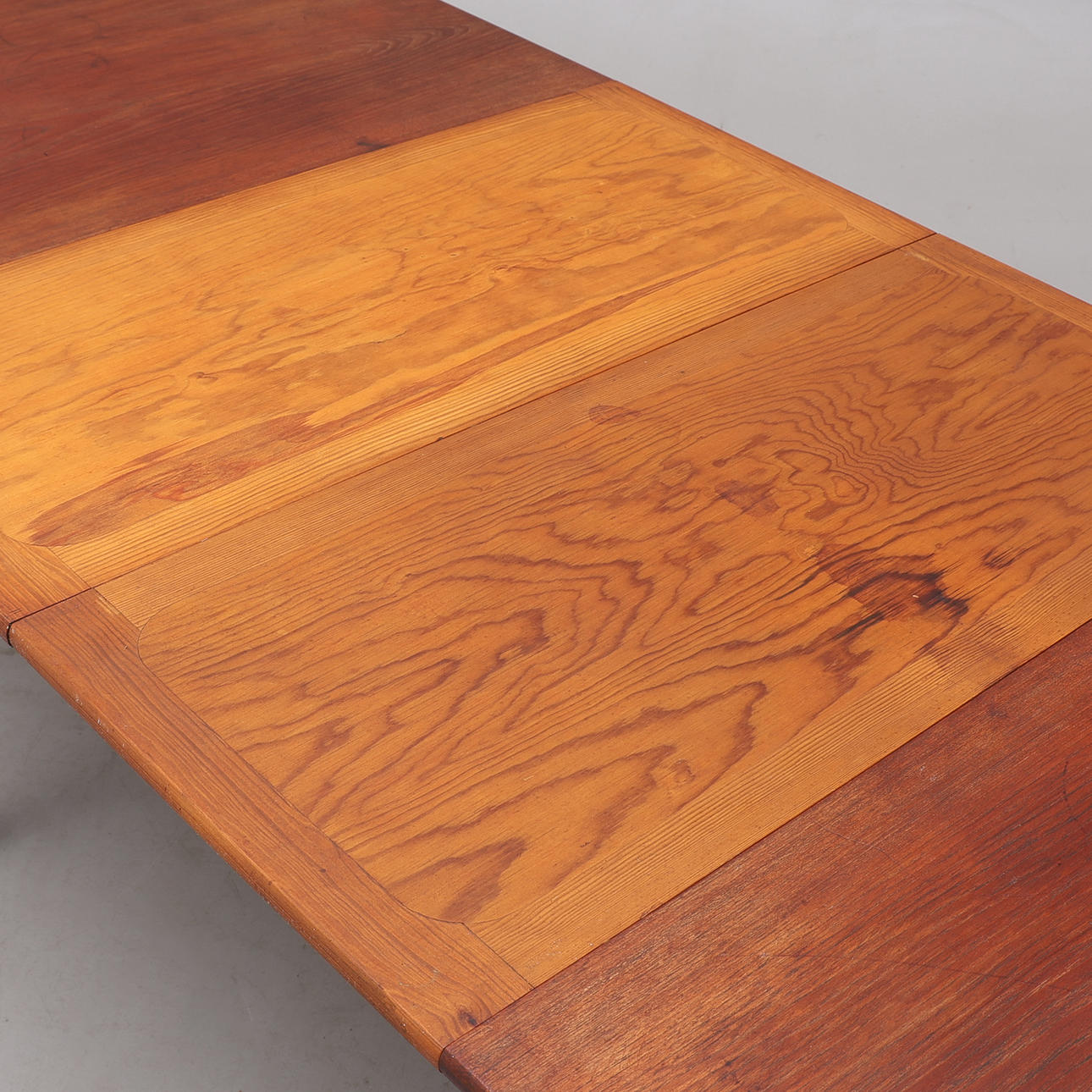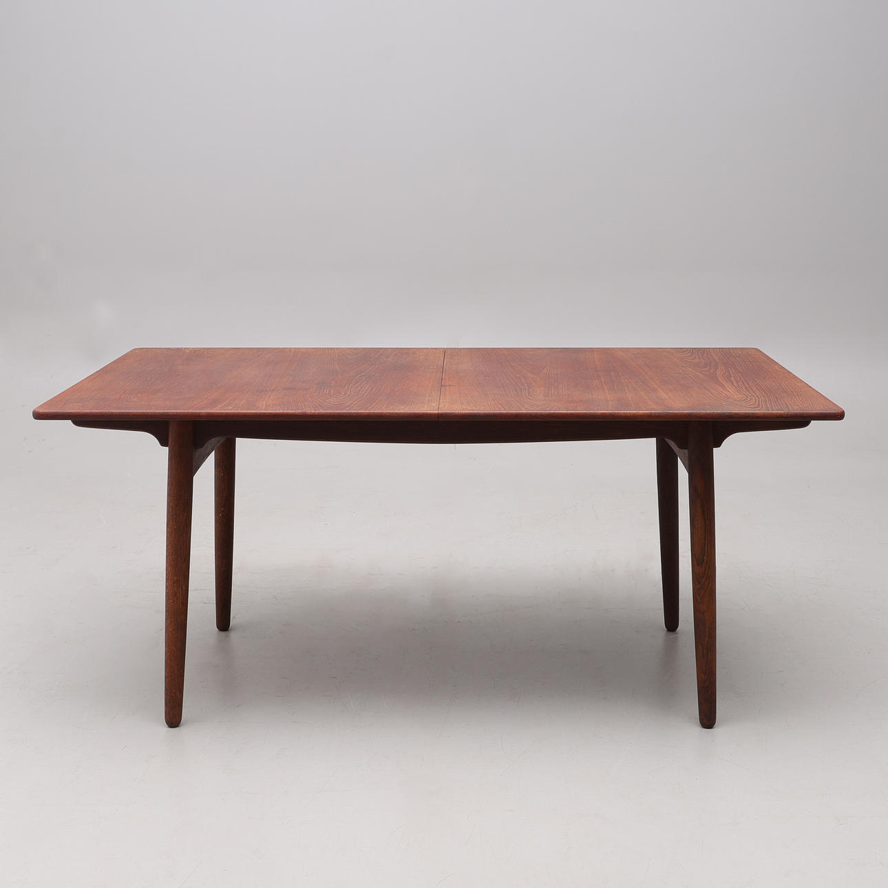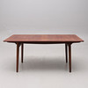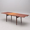 Farvet eg og teak, med to fyrindsatsbrædder, der opbevares under bordpladen. Nedenunder markeret. Højde ca 71 cm, længde 159, bredde 85 cm. Indlæsningstavler 40+40 cm.