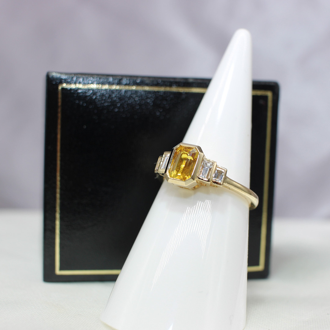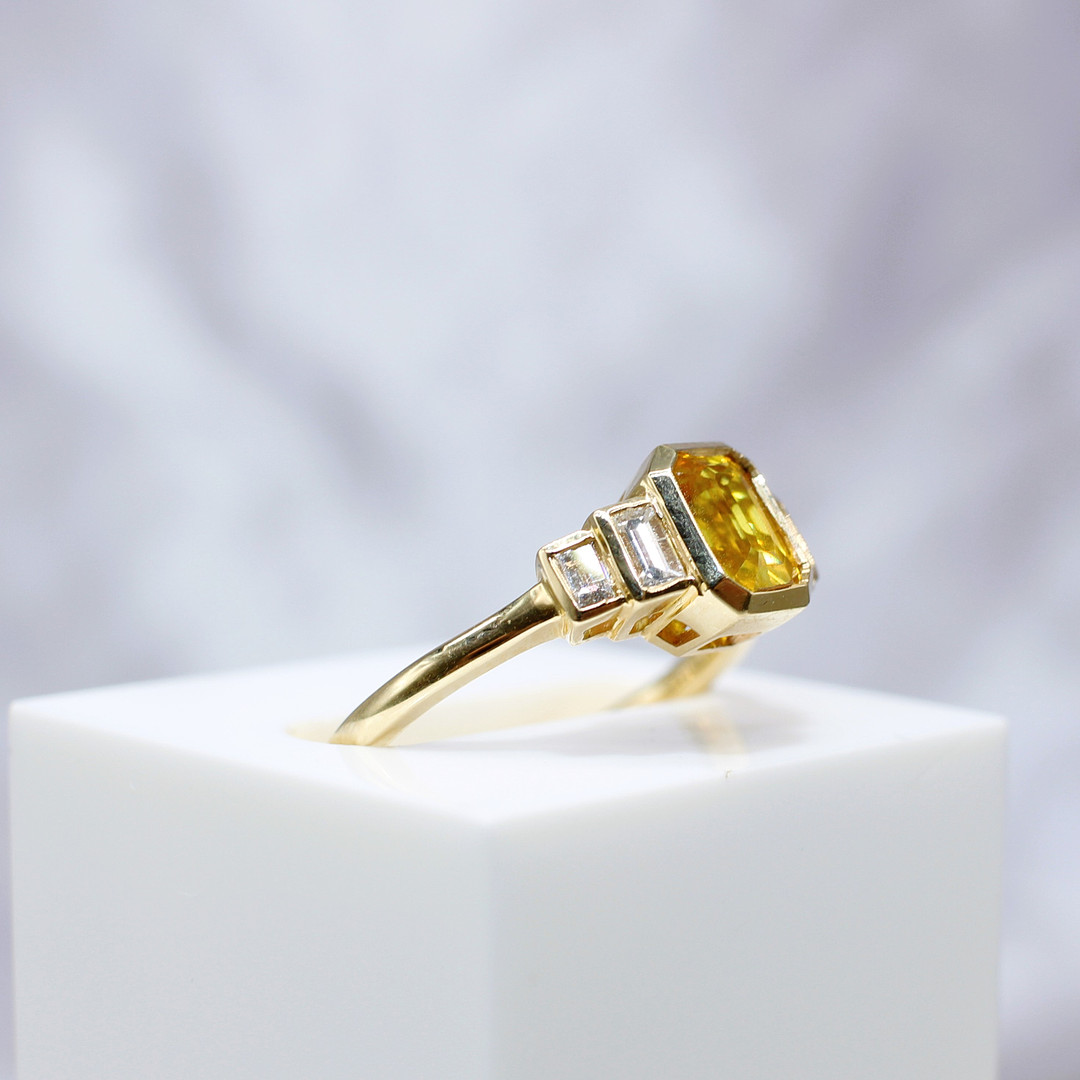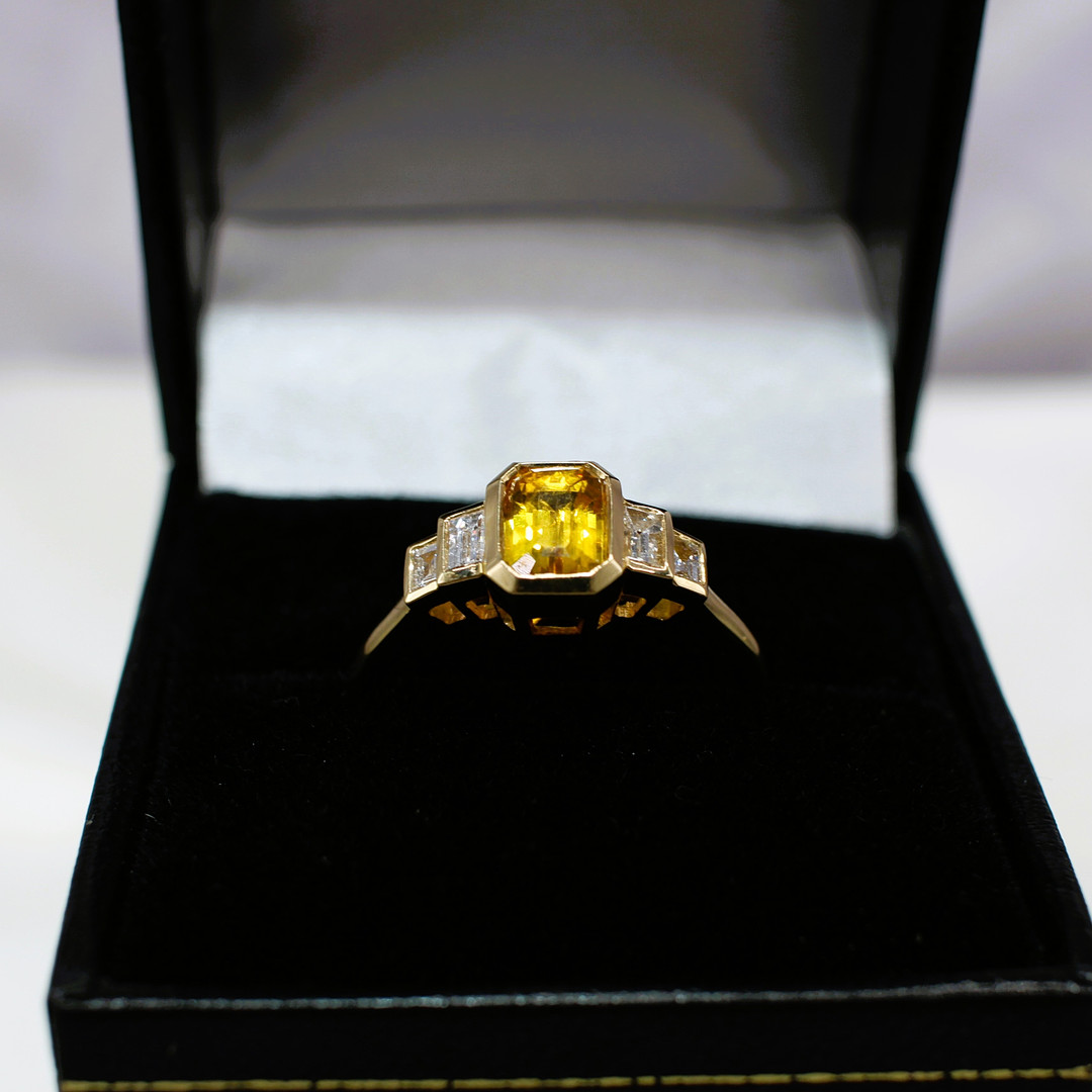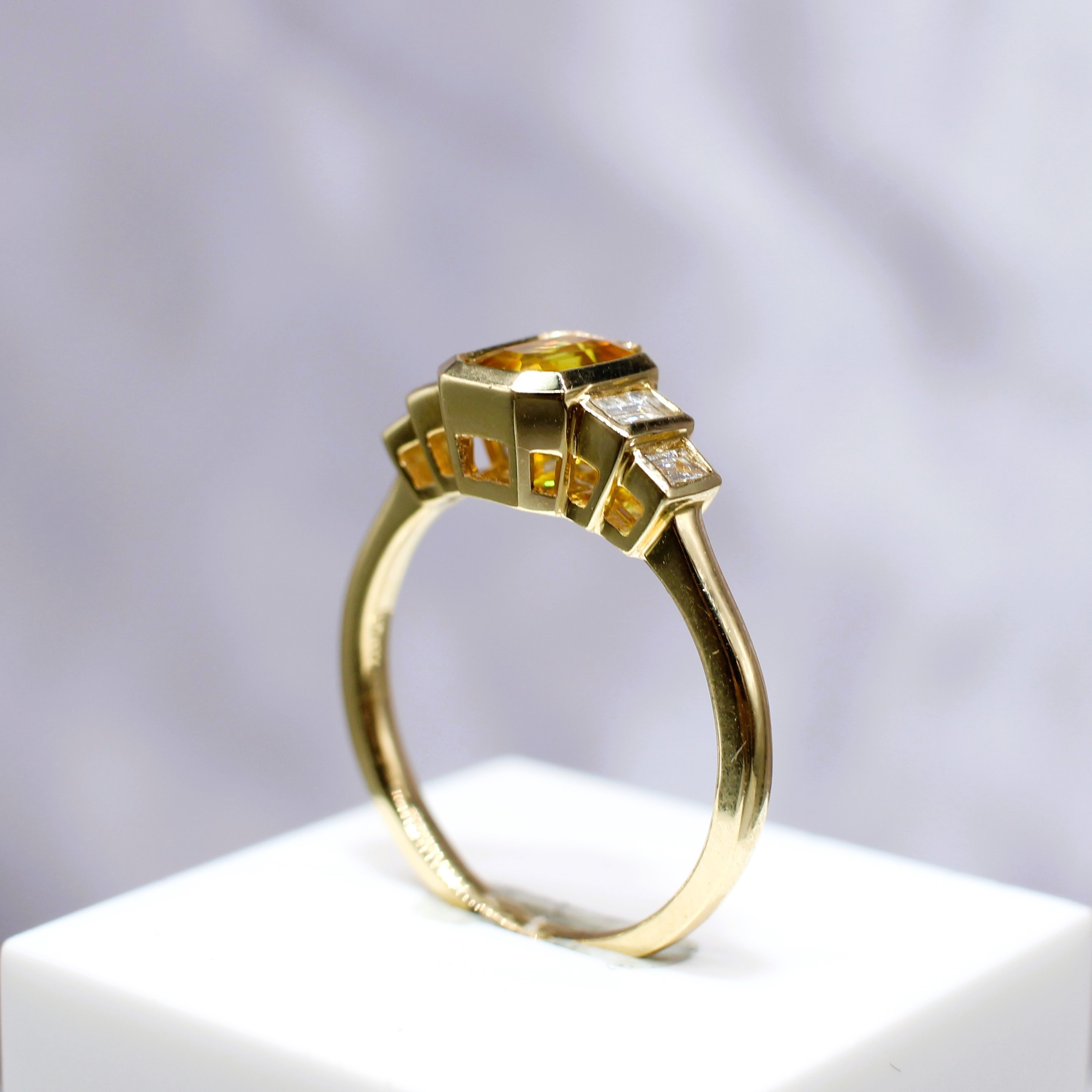 4221035. ORANGE SAFIR & DIAMANT RING.