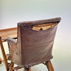 Stor rivning på bagsiden af stolens polstring, mindre tegn på slid i overensstemmelse med alderen.