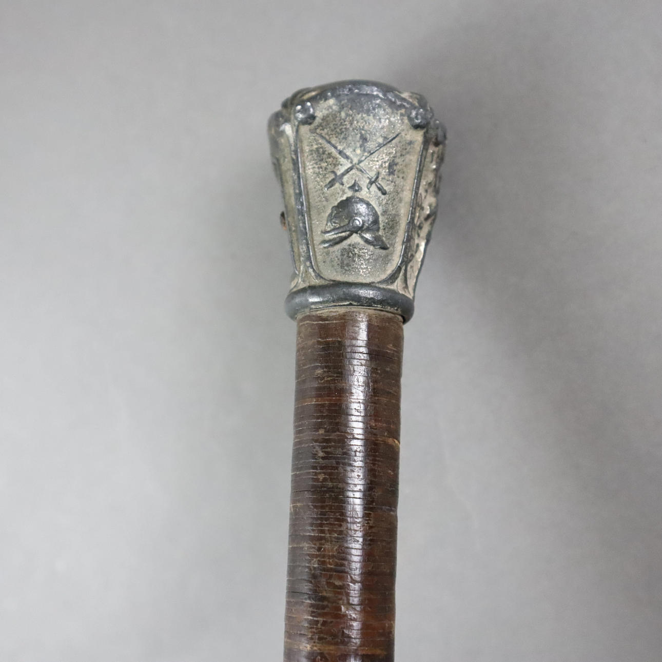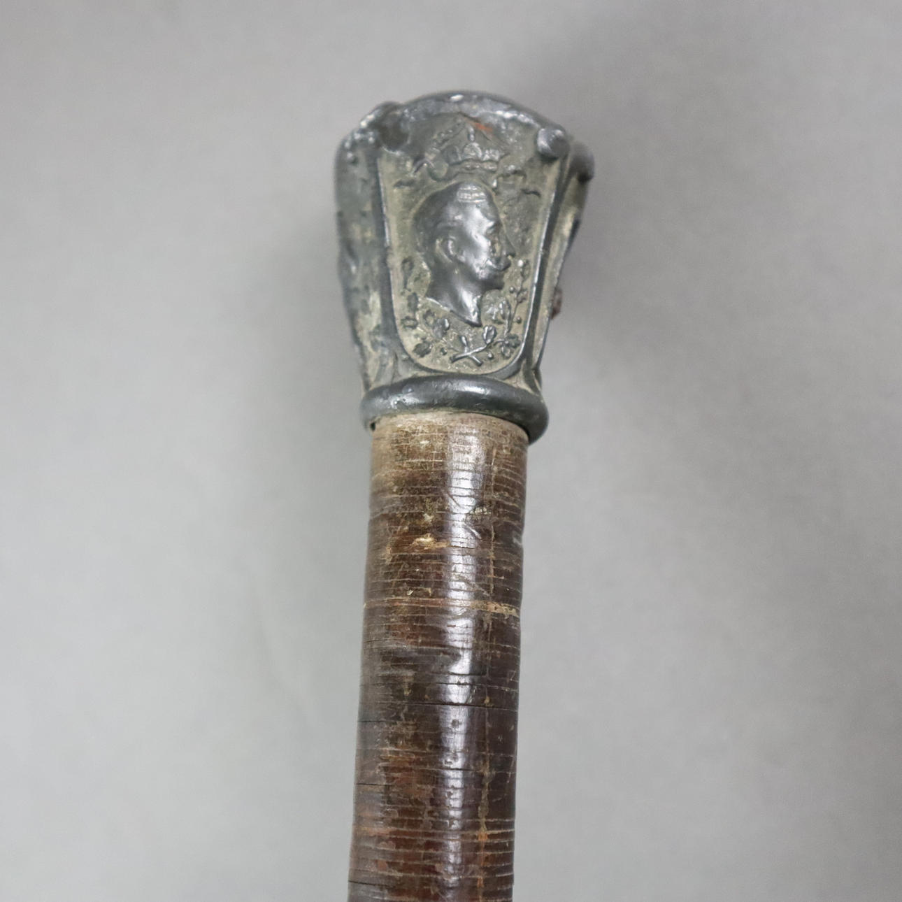 jernstang, delvist belagt med læder, relief femkantet knop med trofæer og kejserligt portræt af Wilhelm II,