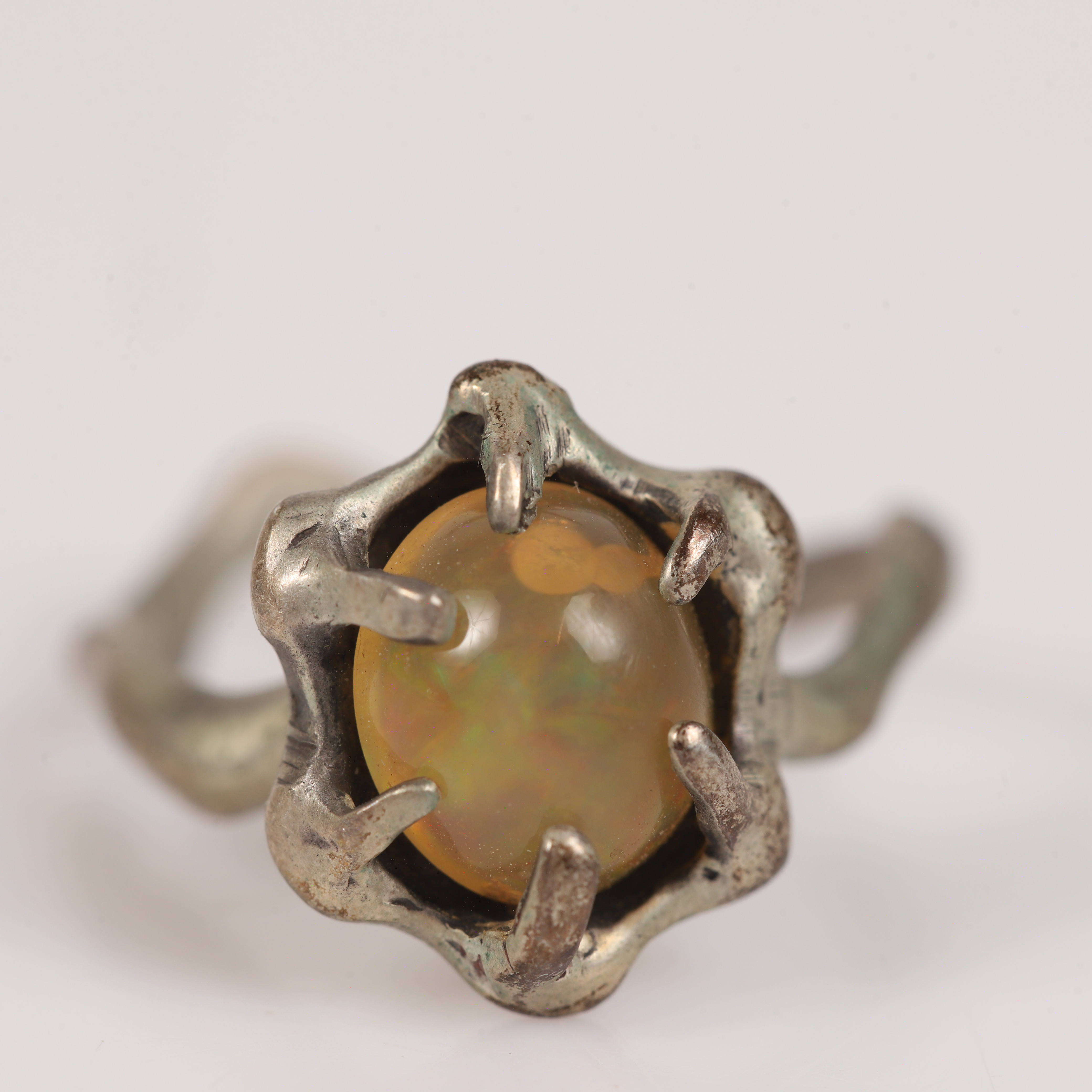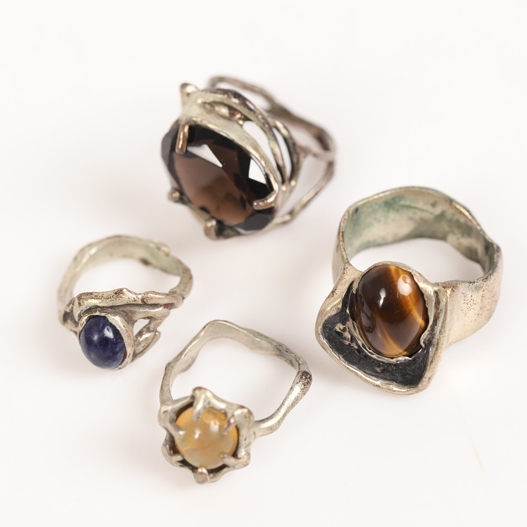 4223649. RINGE, 4 stk, sølv med sten, fl. a. tigerøje.