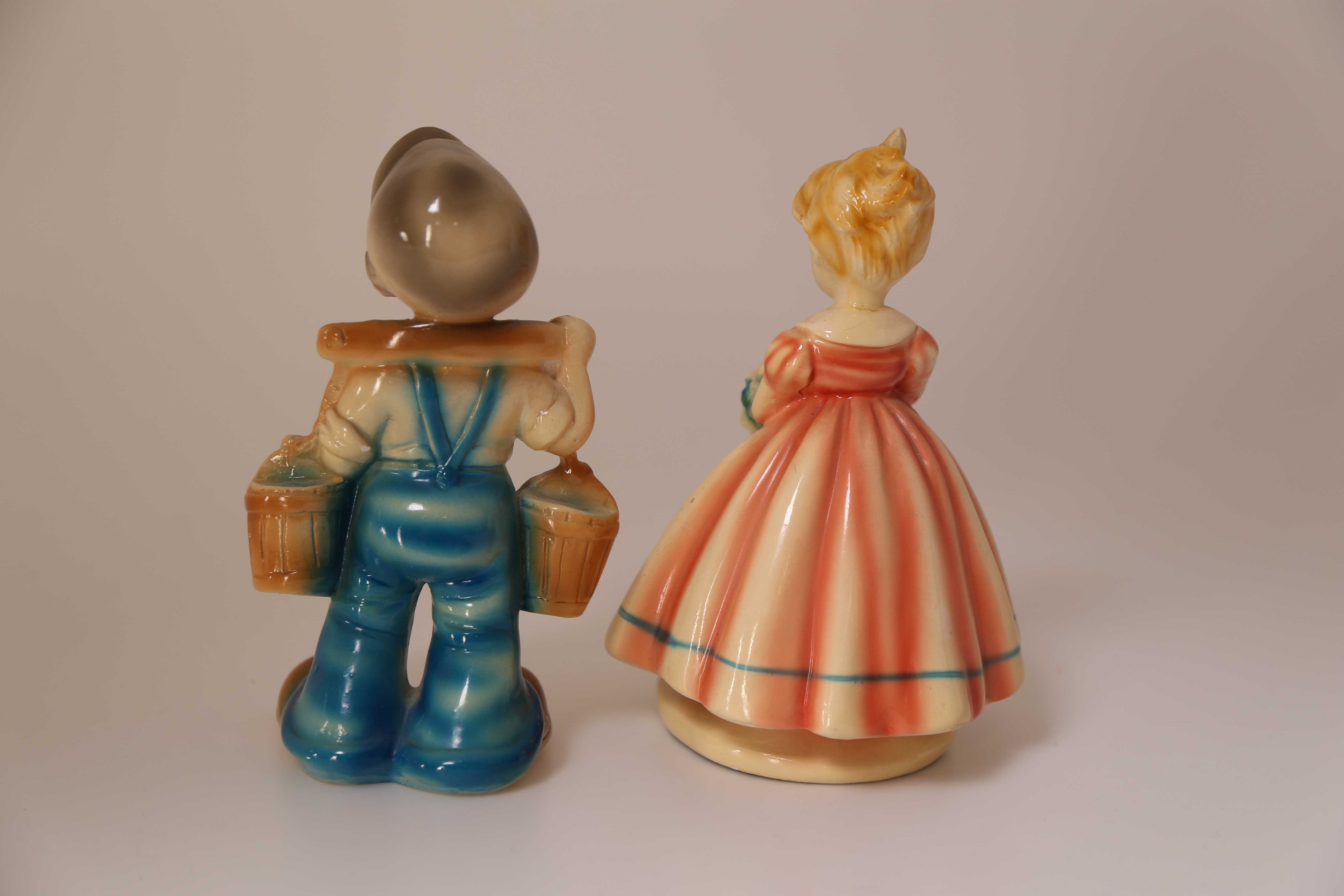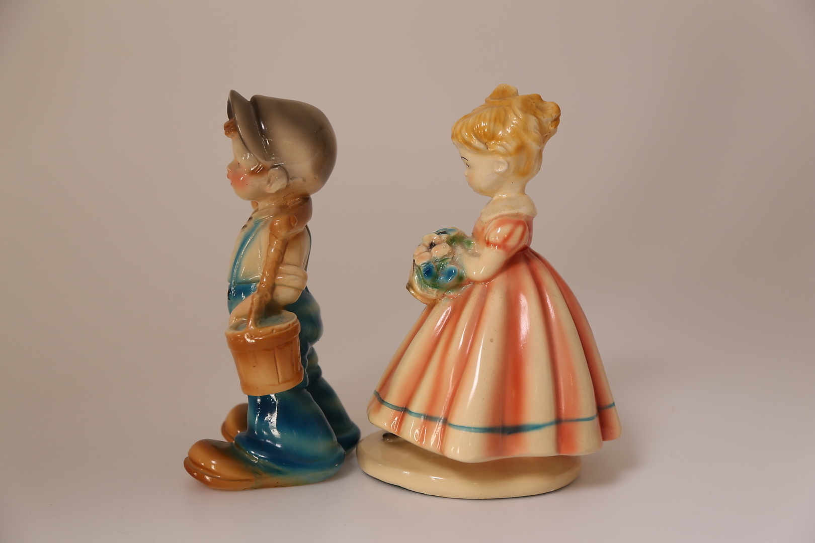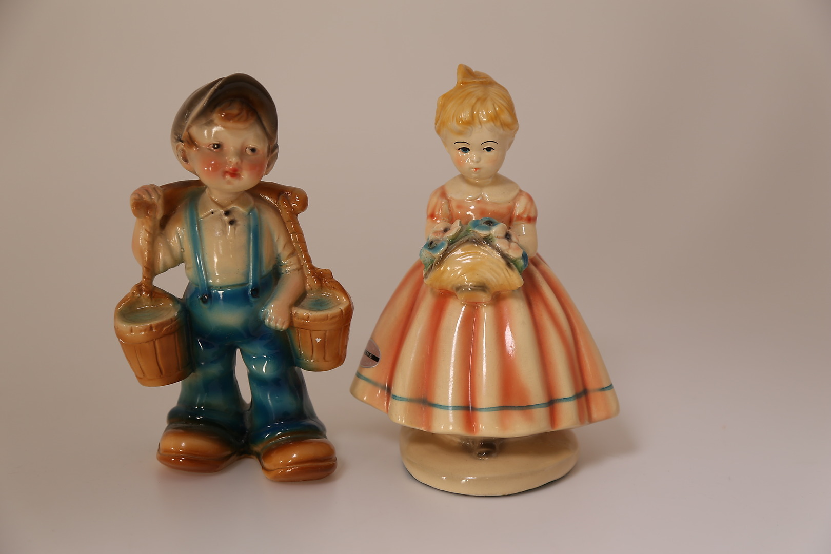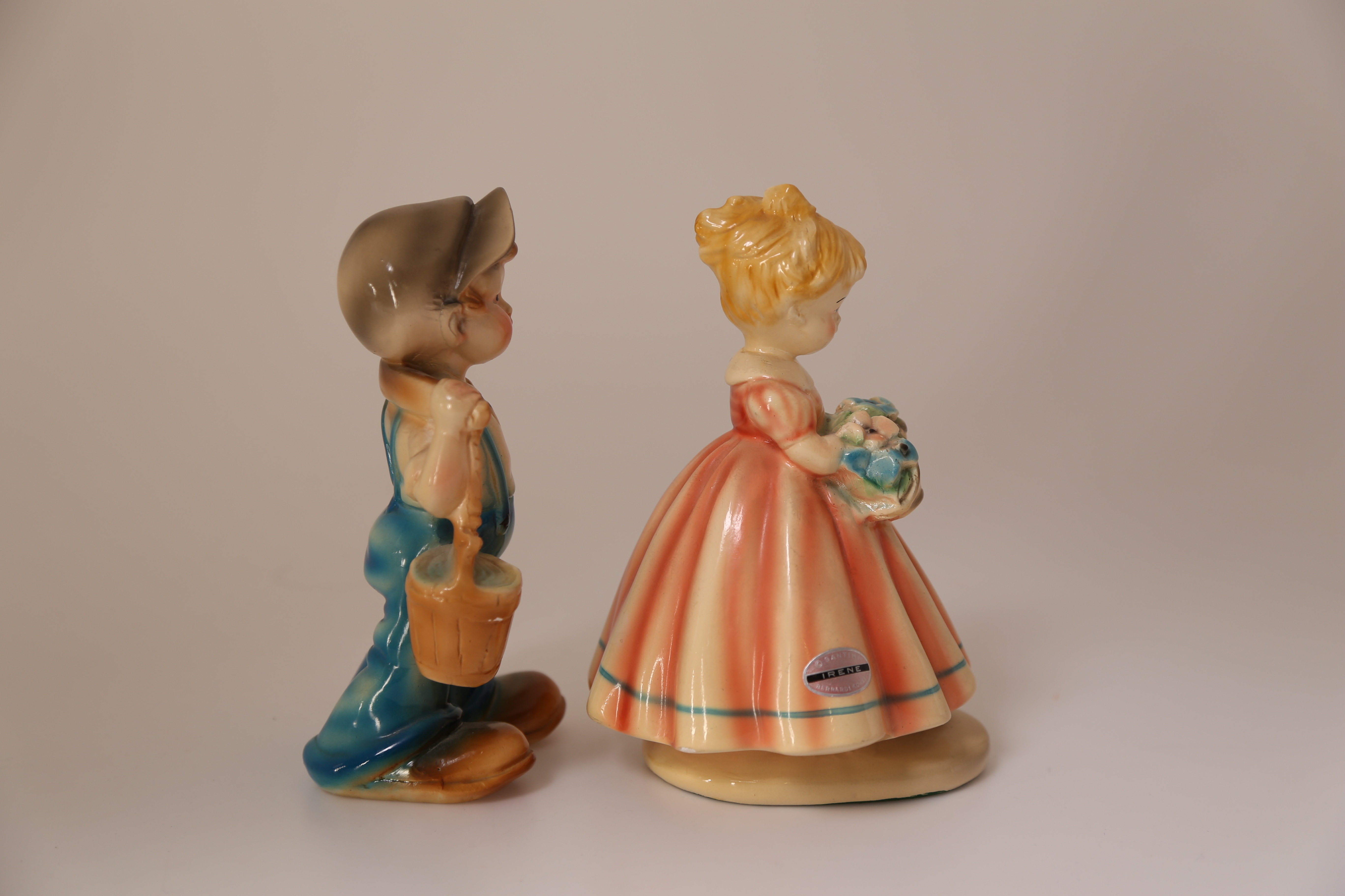 422629. FIGURER, 2 stk, gips, dreng + pige, 1900-tallet.