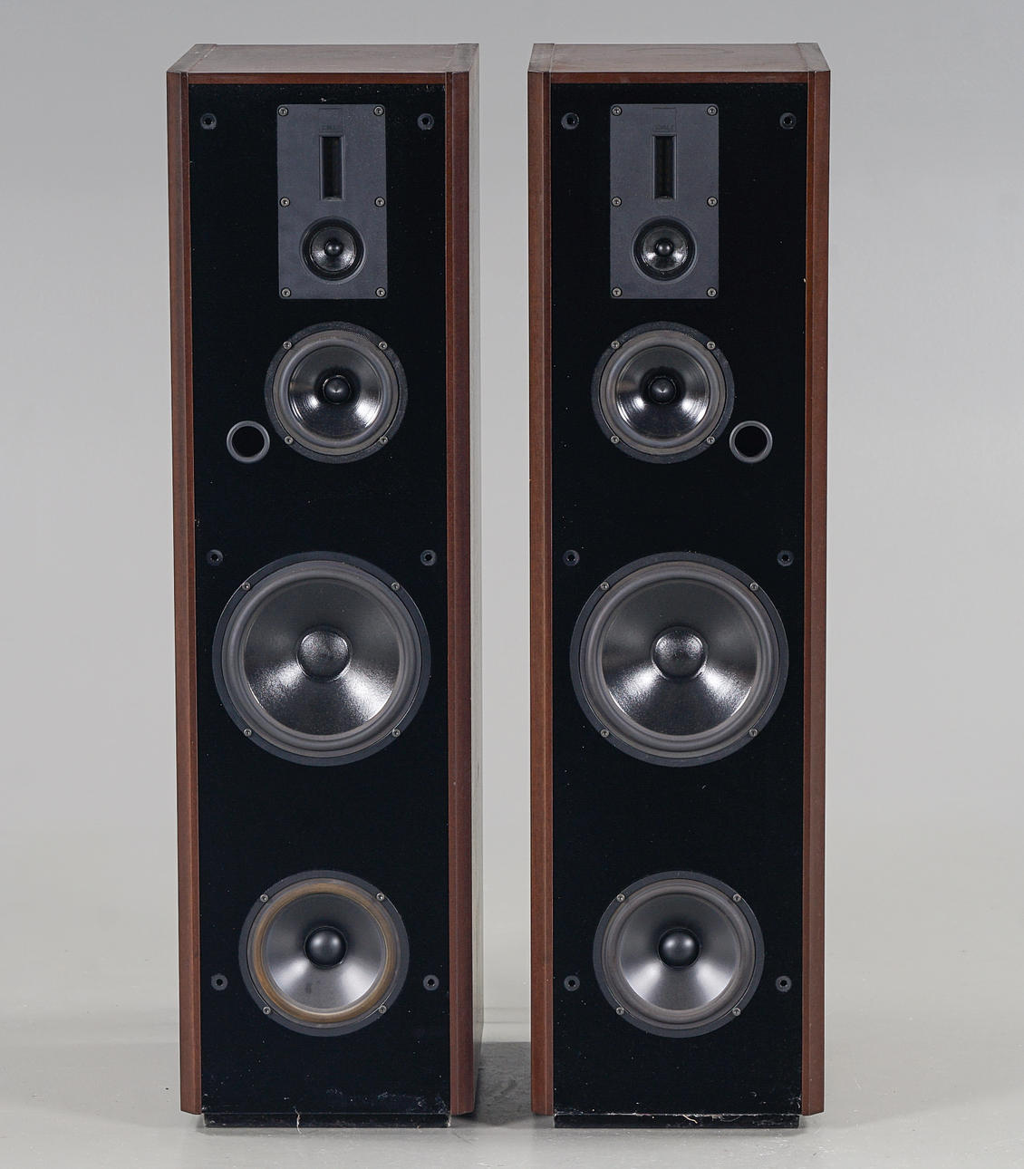 Fineret med mahogni. 3,5-vejs højttaler.