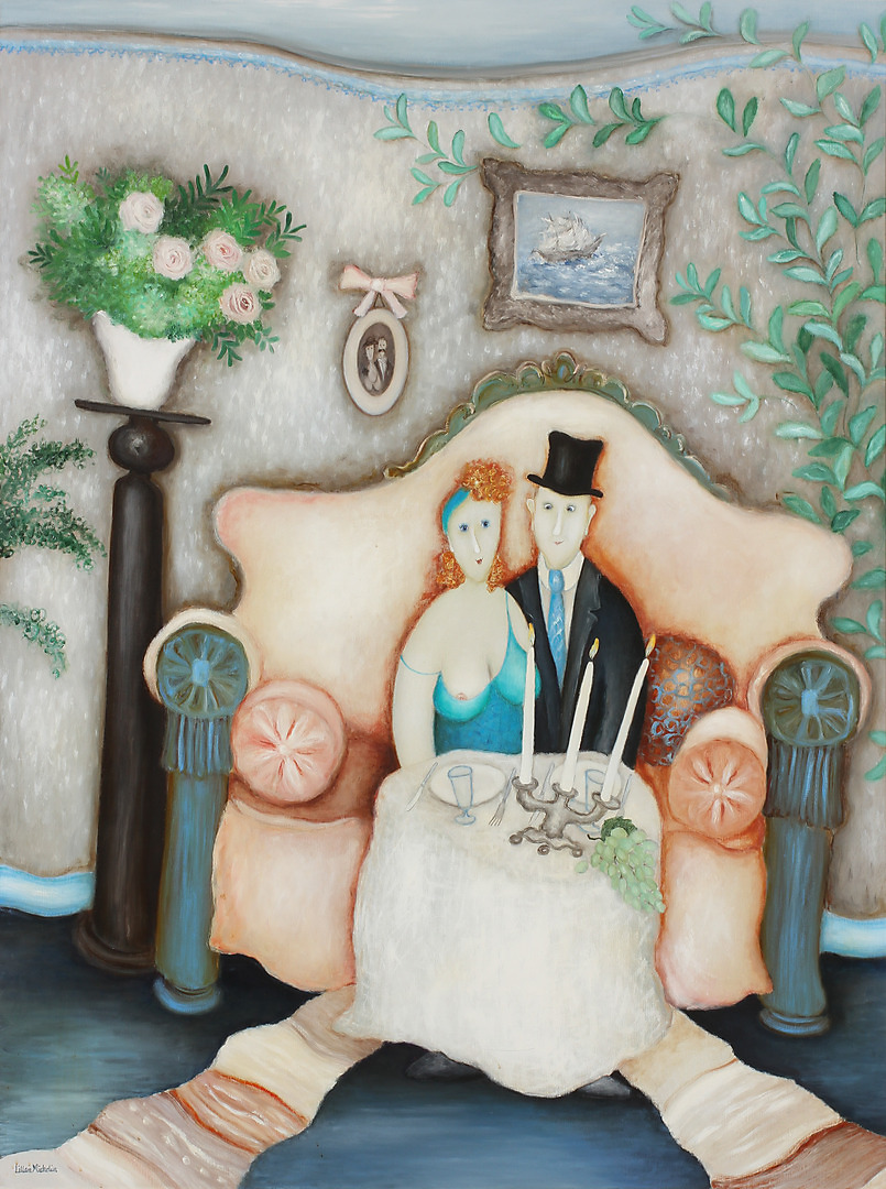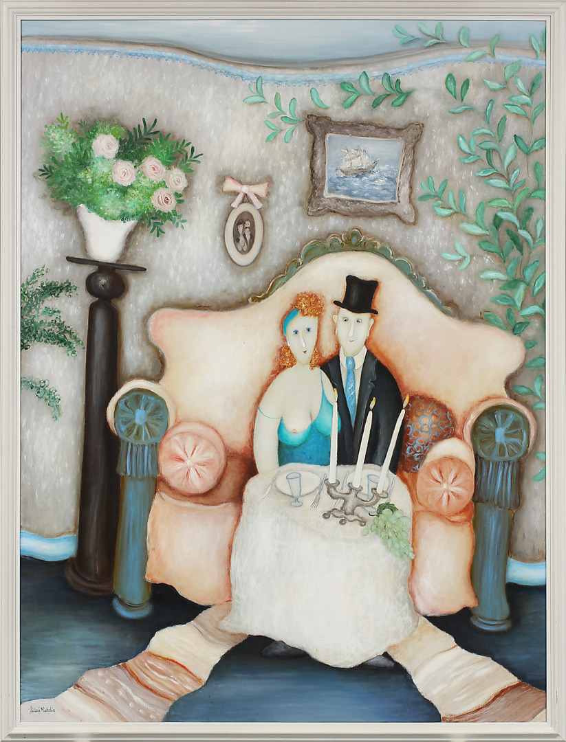 422779. LILLAN MICHELIN. Figurscene, olie på lærred, signeret.