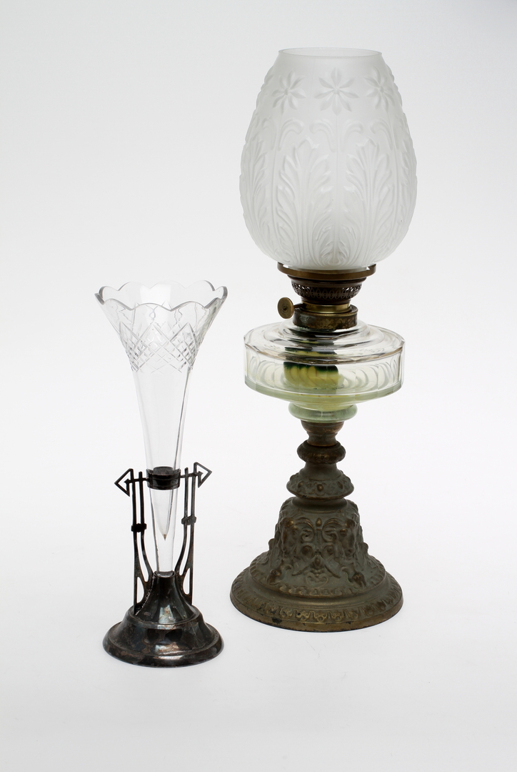42296. BORDFOTOGEN LAMPE og VASE, ca. 1900.