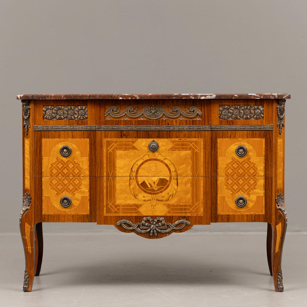 4230432. Kommode, Louis XVI-stil med stenplade, 20. århundrede.