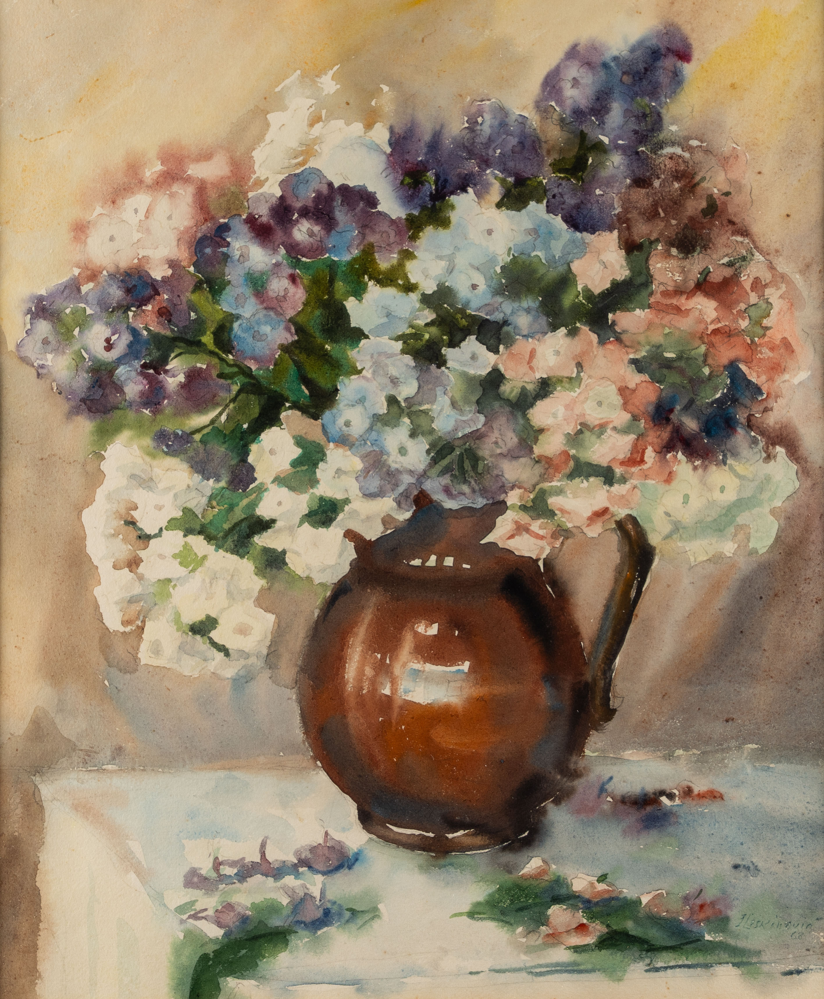 4230681. IRMA LESKINOVIČ. Akvarel på papir, Stilleben af blomster, 1968.