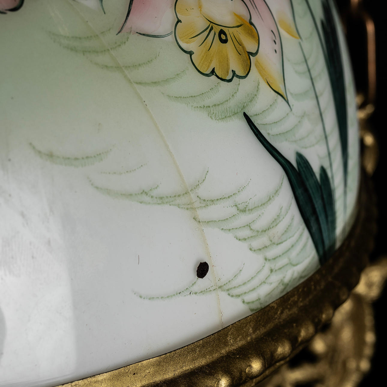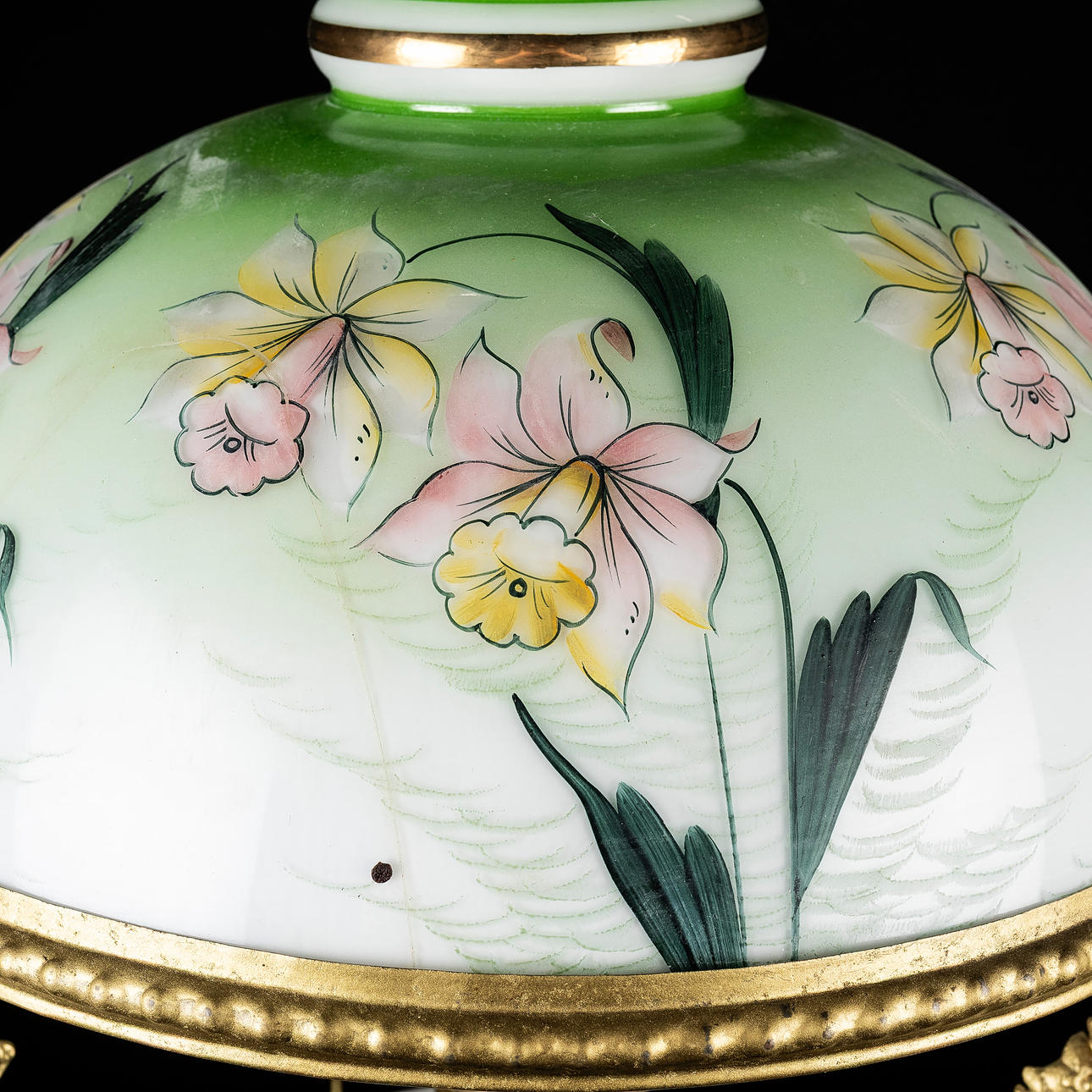 4230879. LOFTFOTOGENISK LAMPE, med blomstermotiv, elektrificeret.