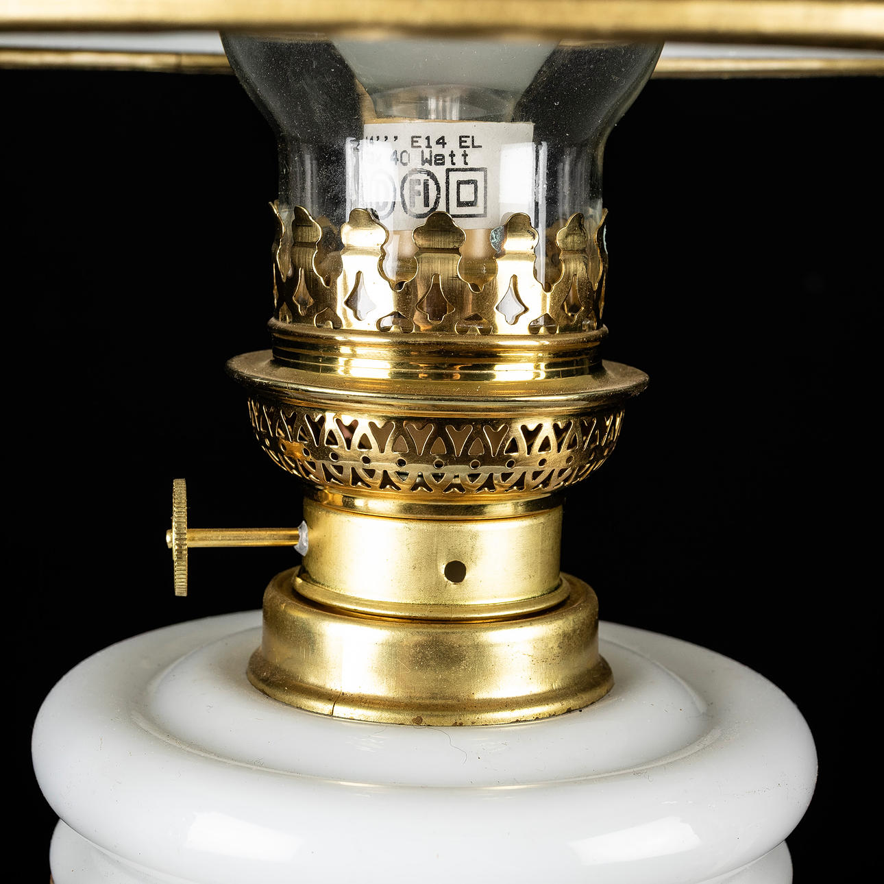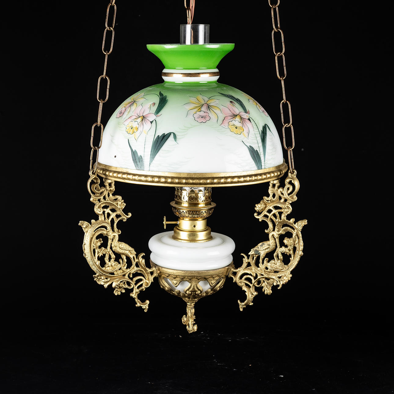 LOFTFOTOGENISK LAMPE, med blomstermotiv, elektrificeret.