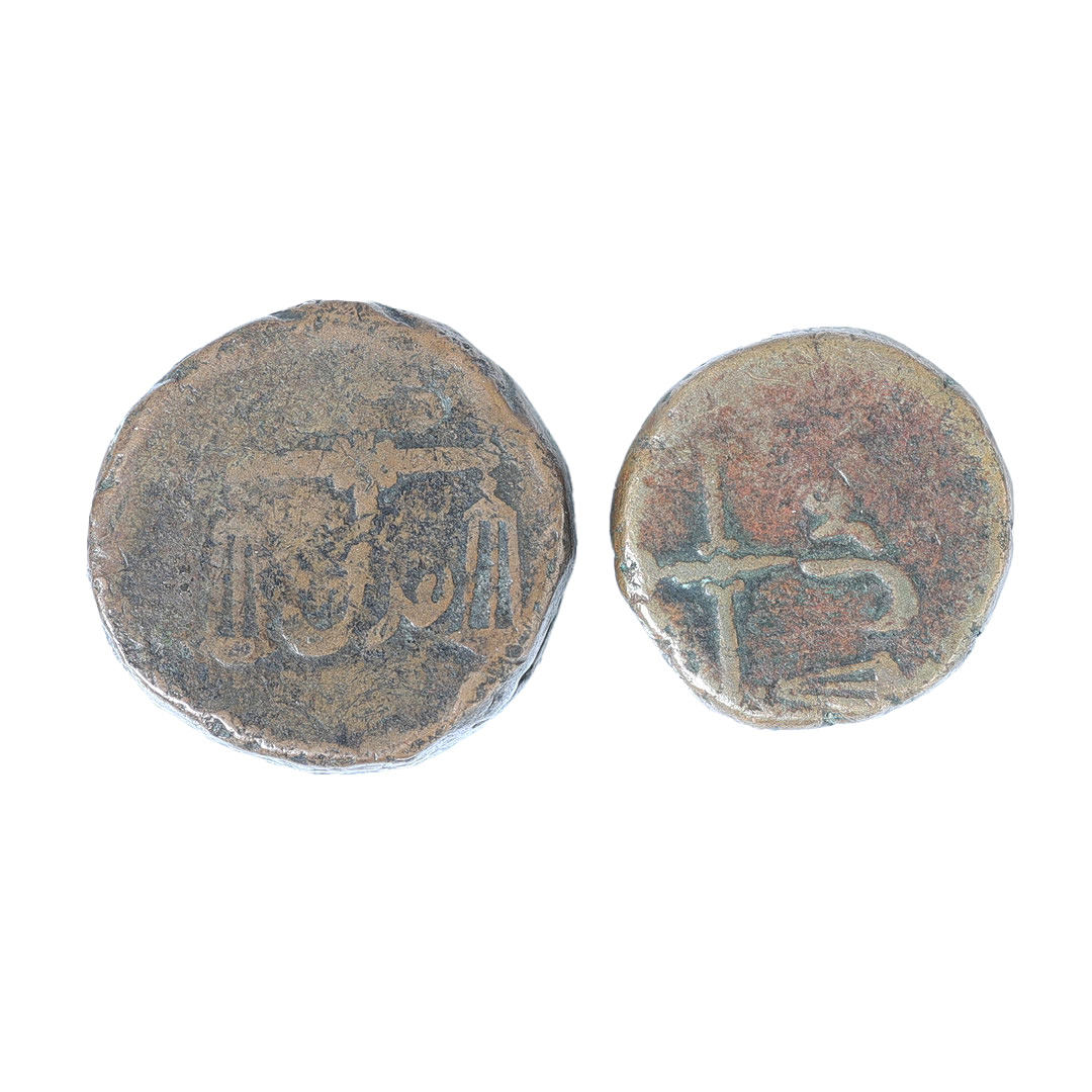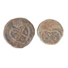 1816 CE, George III, Bombat mynte, reference KM 200, den anden omkring 1800 CE, reference KM 198 (2).