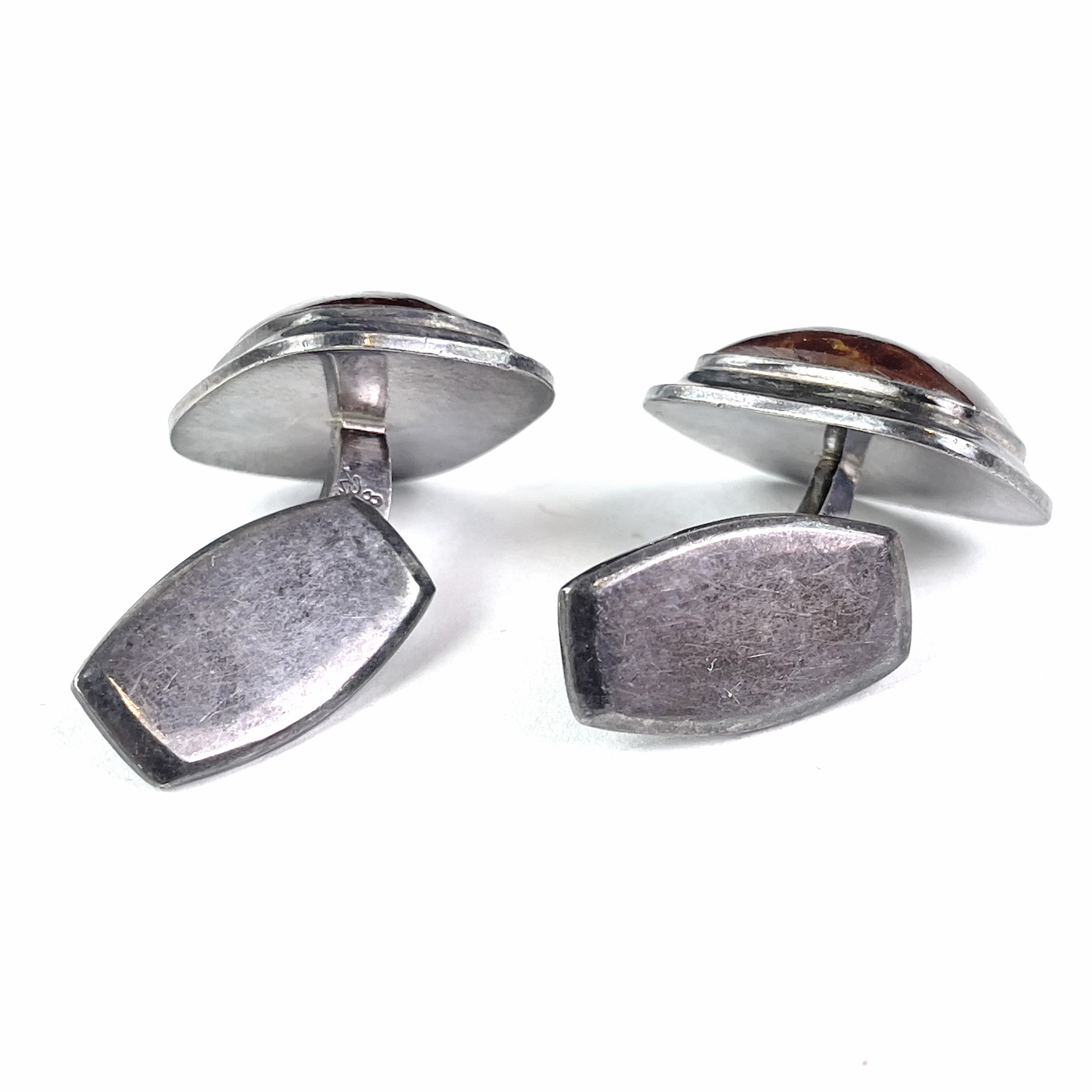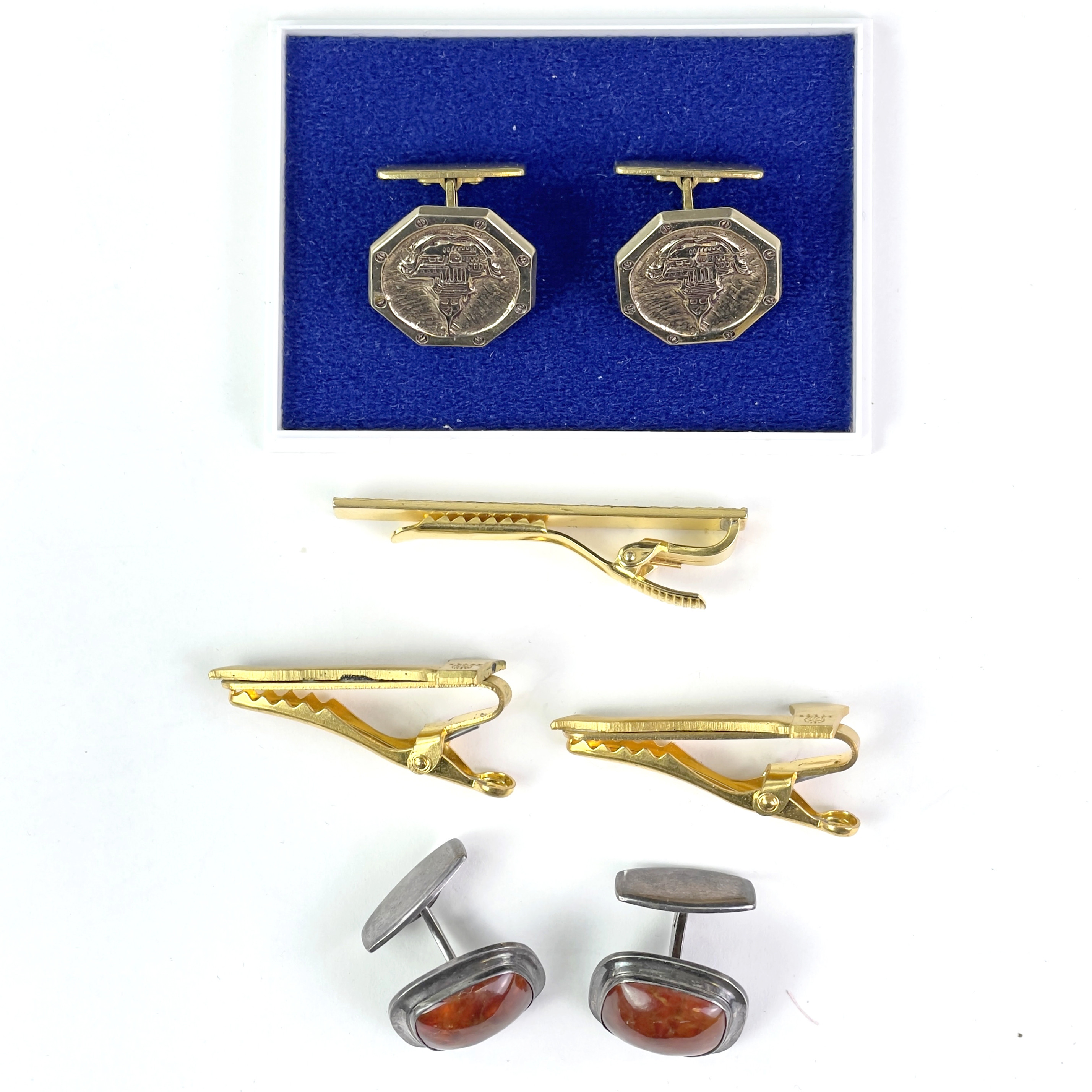 4233634. MANCHETKNAPPER og SLIPSKLEMMER, 5 stk., herunder sølv/rav, Rusch.