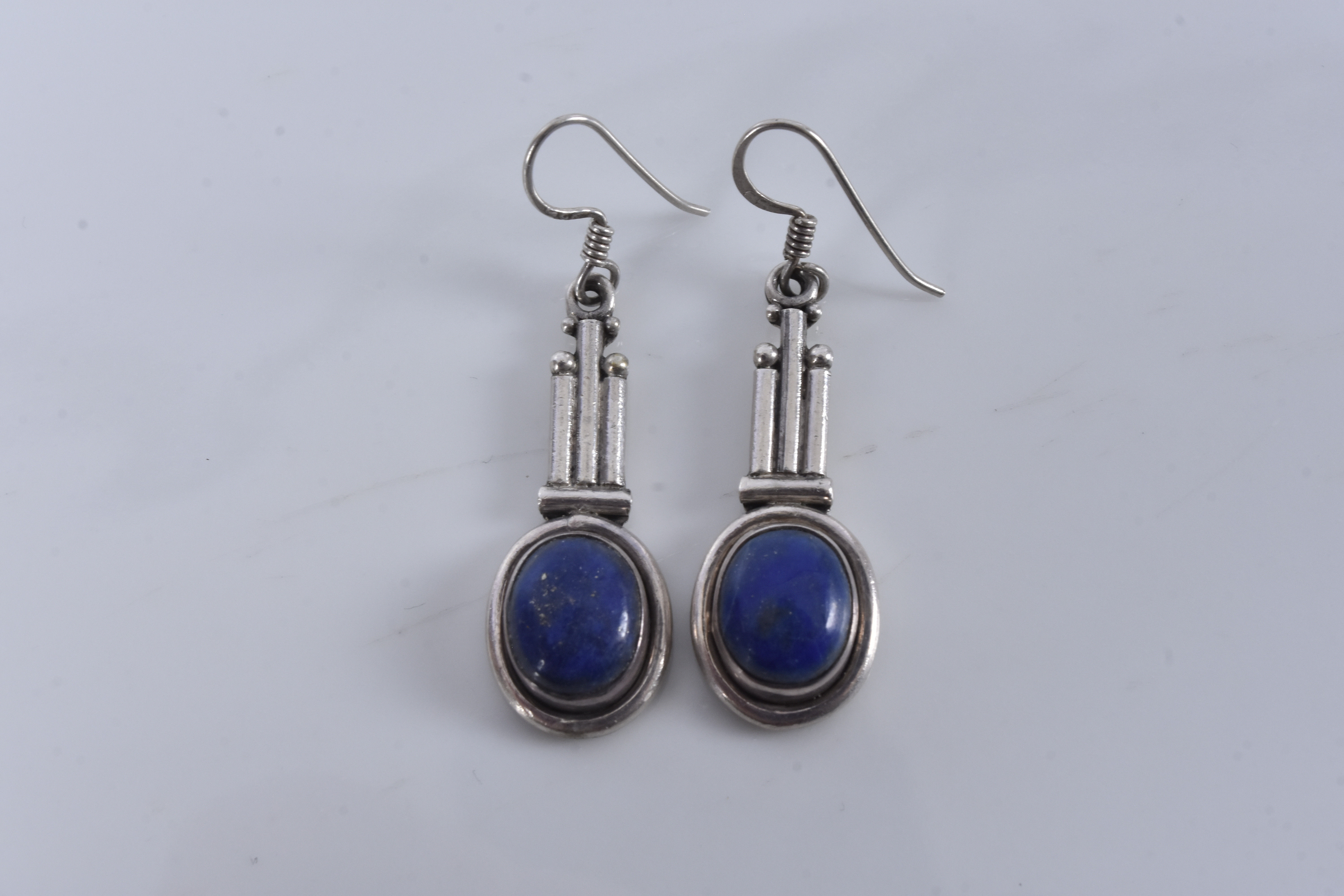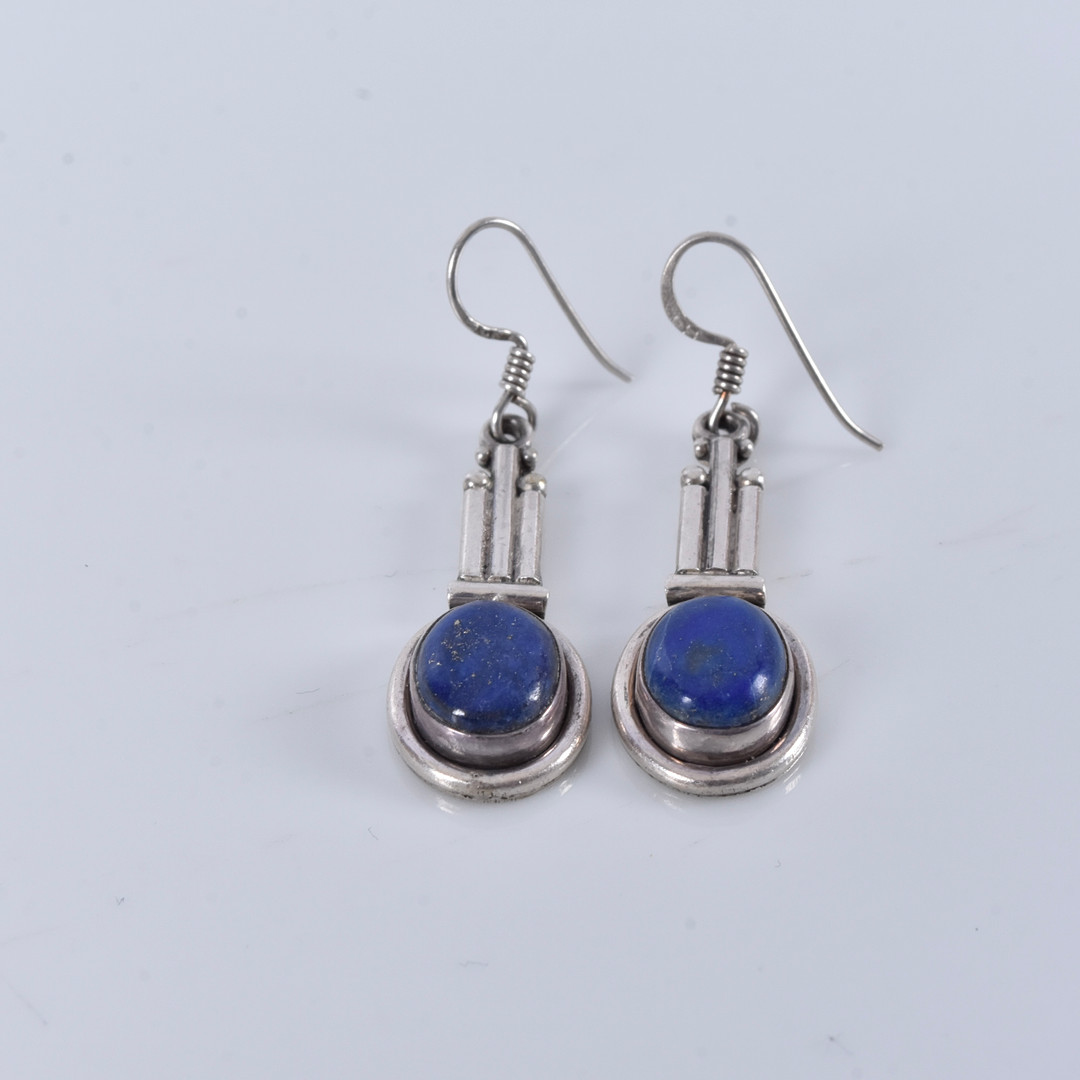 4233703. ØRERINGE, med blå sten, sterlingsølv.