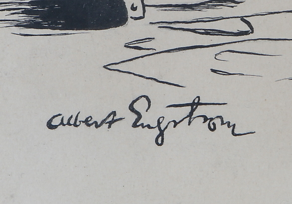 423437. ALBERT ENGSTRÖM. Figurscene, blæk, signeret.
