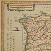 Arkkant 375 x 495 mm, Fuld klinge 400 x 525 mm. Graveret kort i moderne håndfarve med en dekorativ cartouche og et indsat detaljekort over Gibraltar-området. Viser den iberiske halvø i oldtiden.