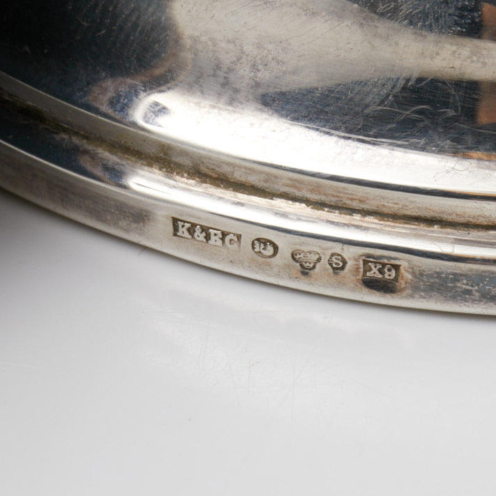 LYSESTAGER. 1 par, sølv, lav model, udstoppede fødder, K&EG, 1972.