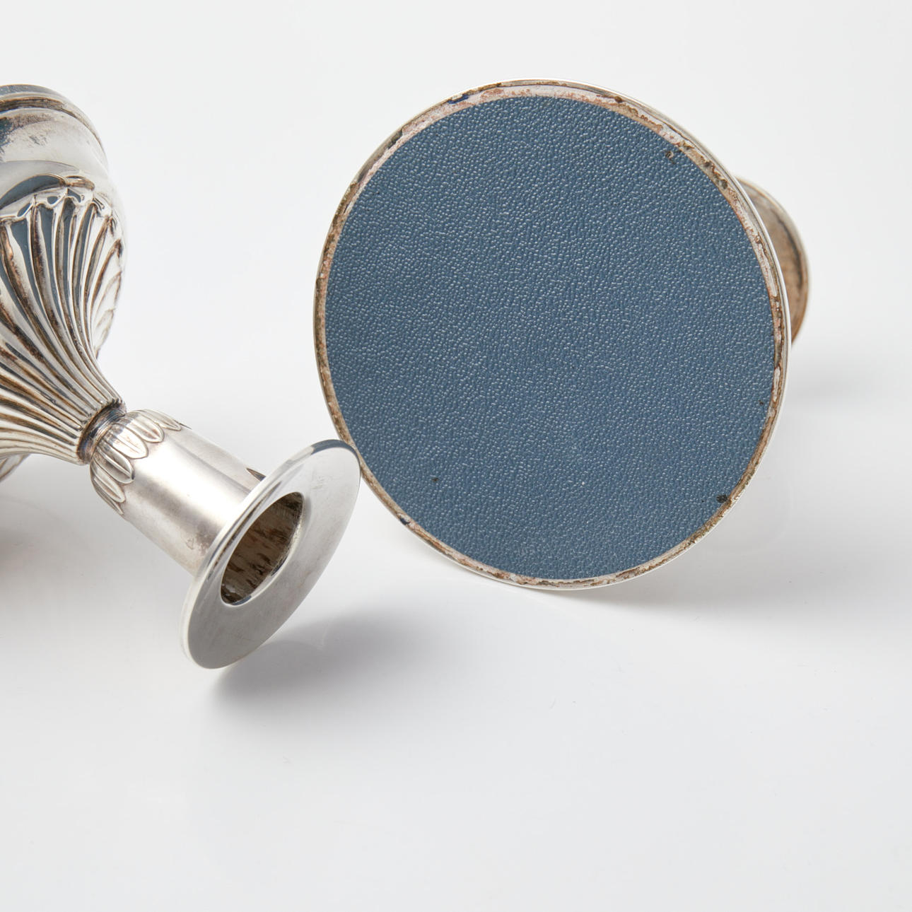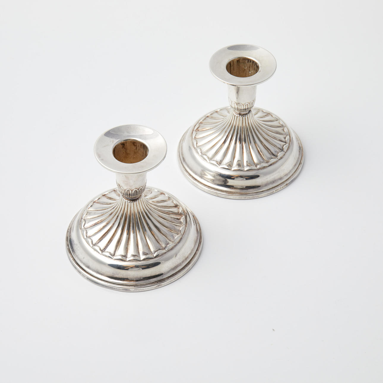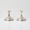 4234472. LYSESTAGER. 1 par, sølv, lav model, udstoppede fødder, K&EG, 1972.