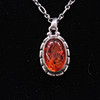 Vedhæng med rav og halskæde, sølv, højde 3cm, længde 44cm.