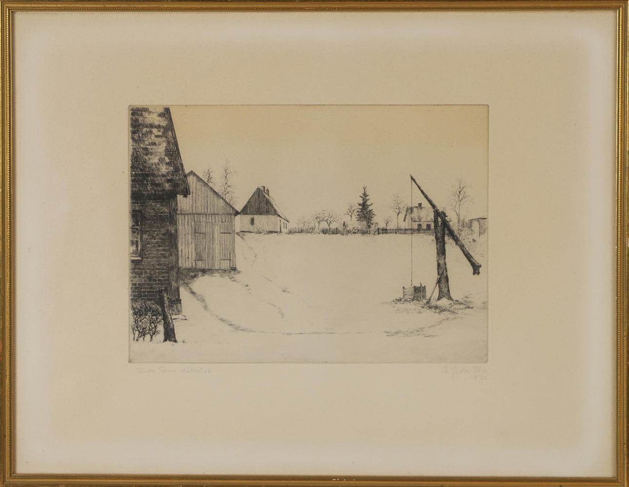 4237430. EMIL JOHANSSON-THOR. Vinter Hällestad, ætsning, signeret.