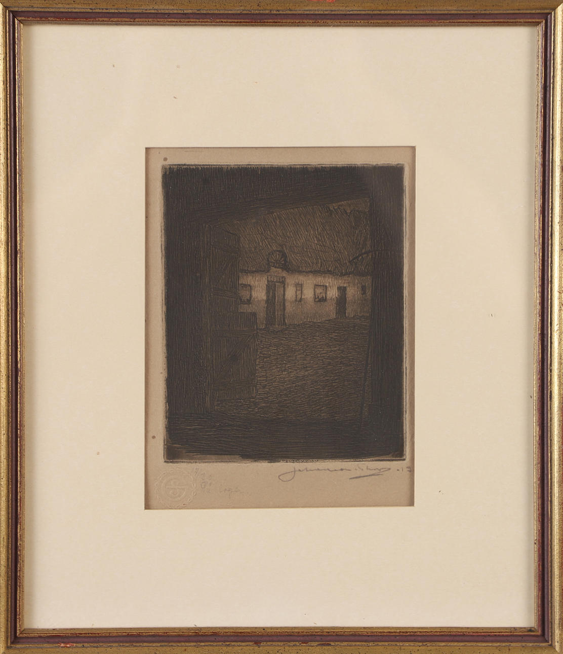 EMIL JOHANSSON-THOR. Gård, ætsning, signeret.