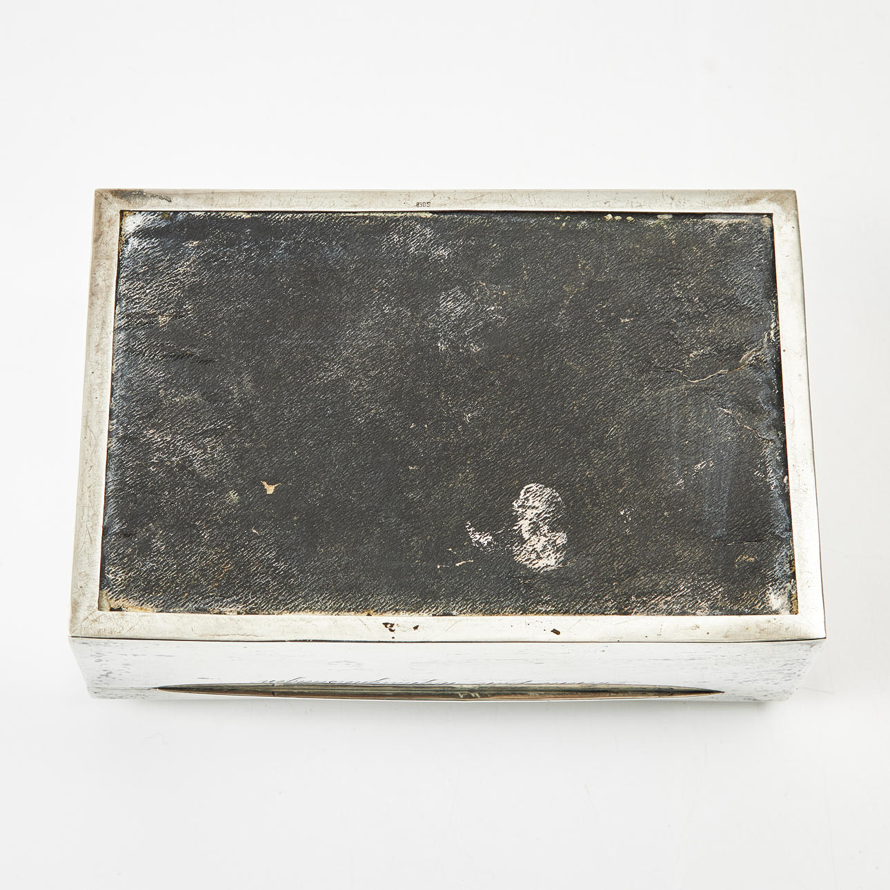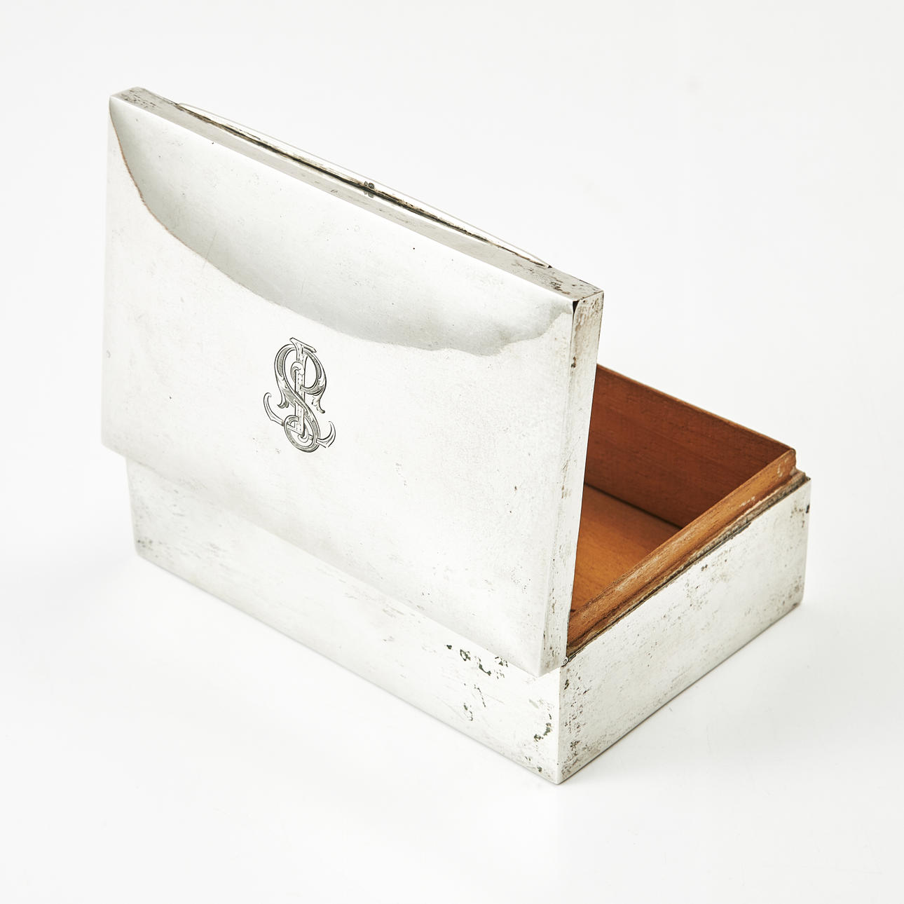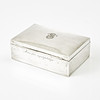 4241031. ÆSKE, sølv, dekoreret i cedertræ, lås med gravering.