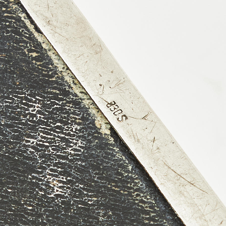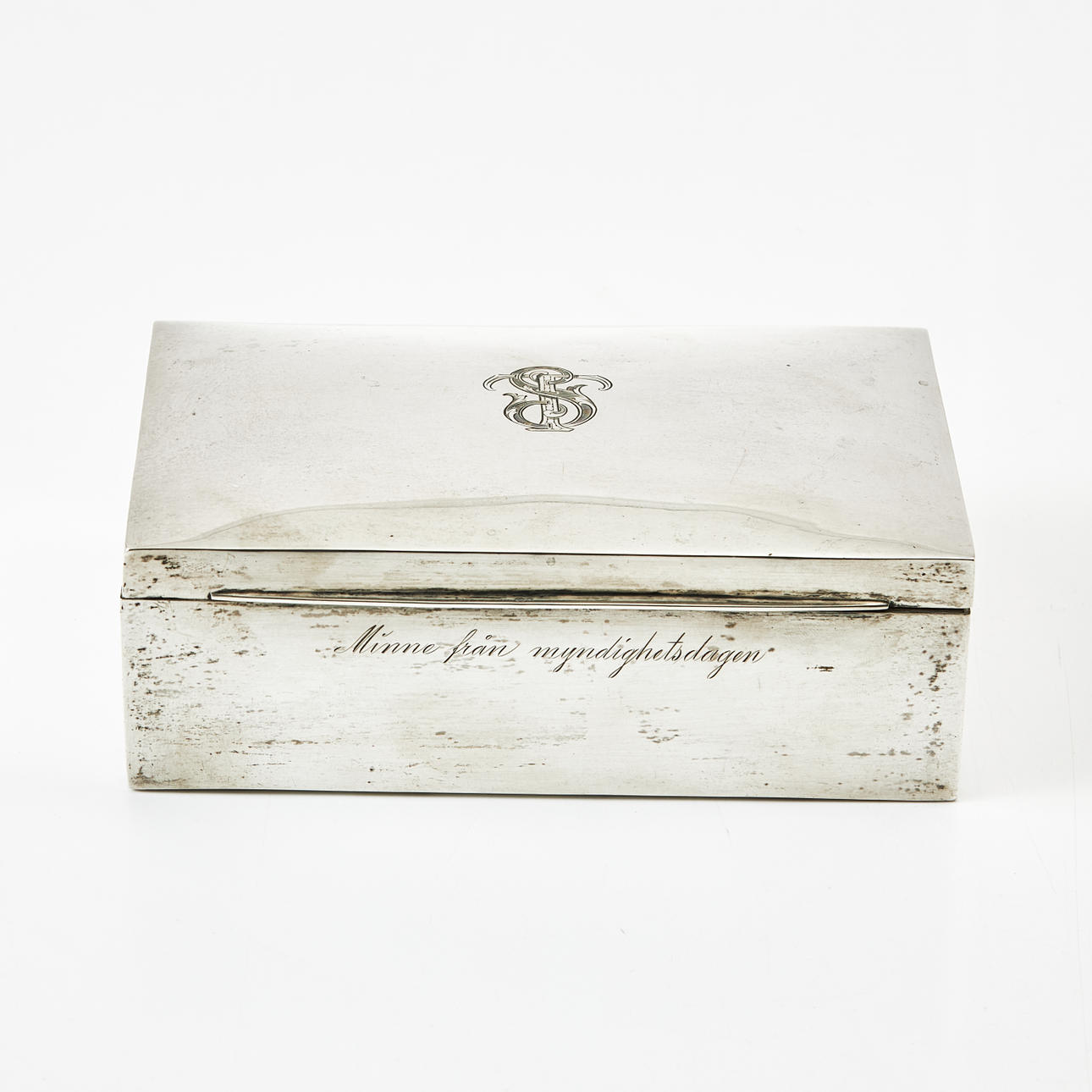 ÆSKE, sølv, dekoreret i cedertræ, lås med gravering.
