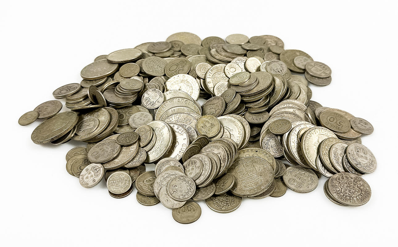 Sæt af svenske mønter med sølvindhold.