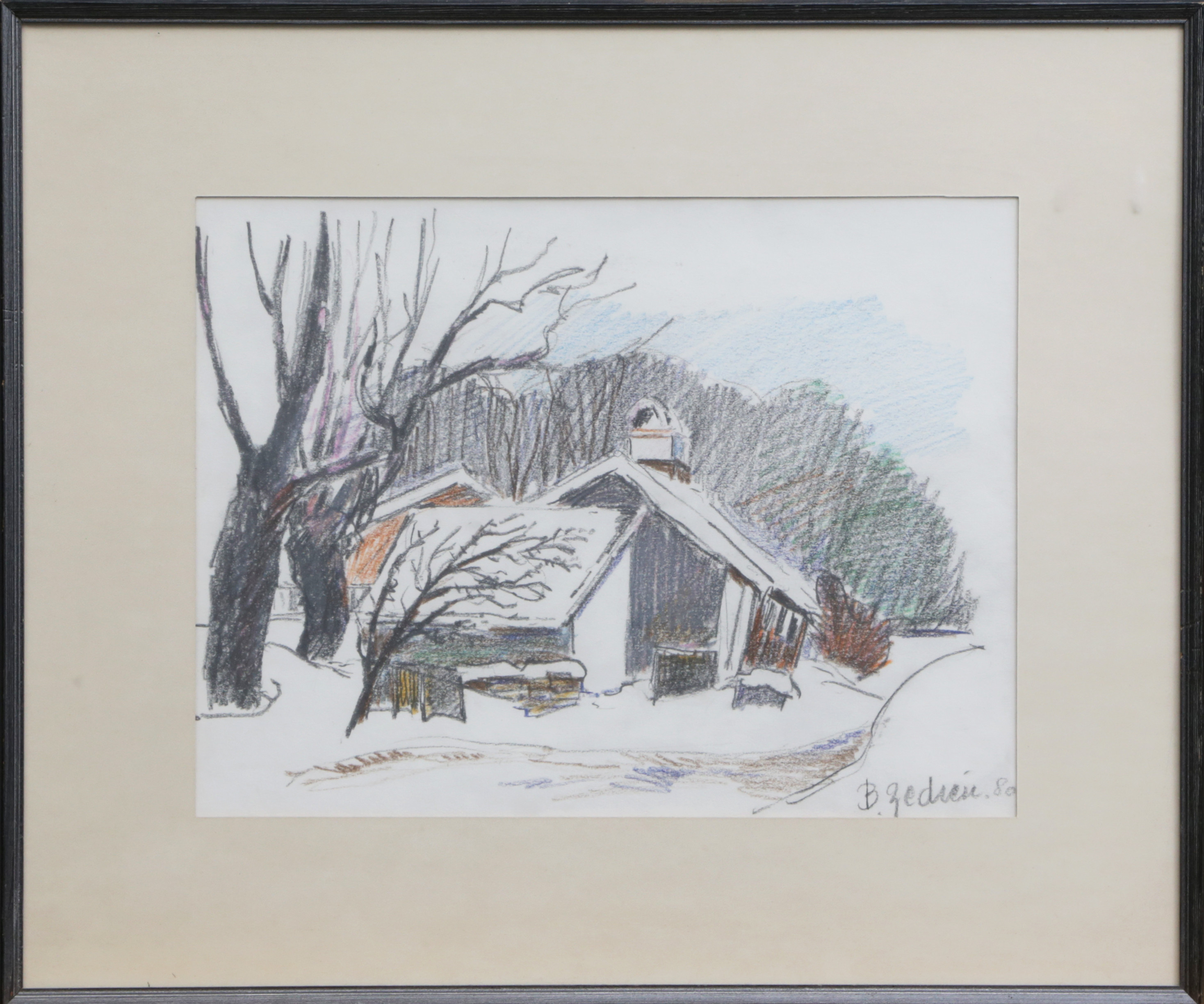 4243540. BERT ZEDRÉN. Tegning, kridt, signeret, 1980.
