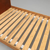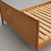 Gavle fineret med teak og eg med indretning af flettet rotting. Langsider fineret med eg. Ribbet bund lavet af fyr. Bredde ca. 135, længde 200 cm.