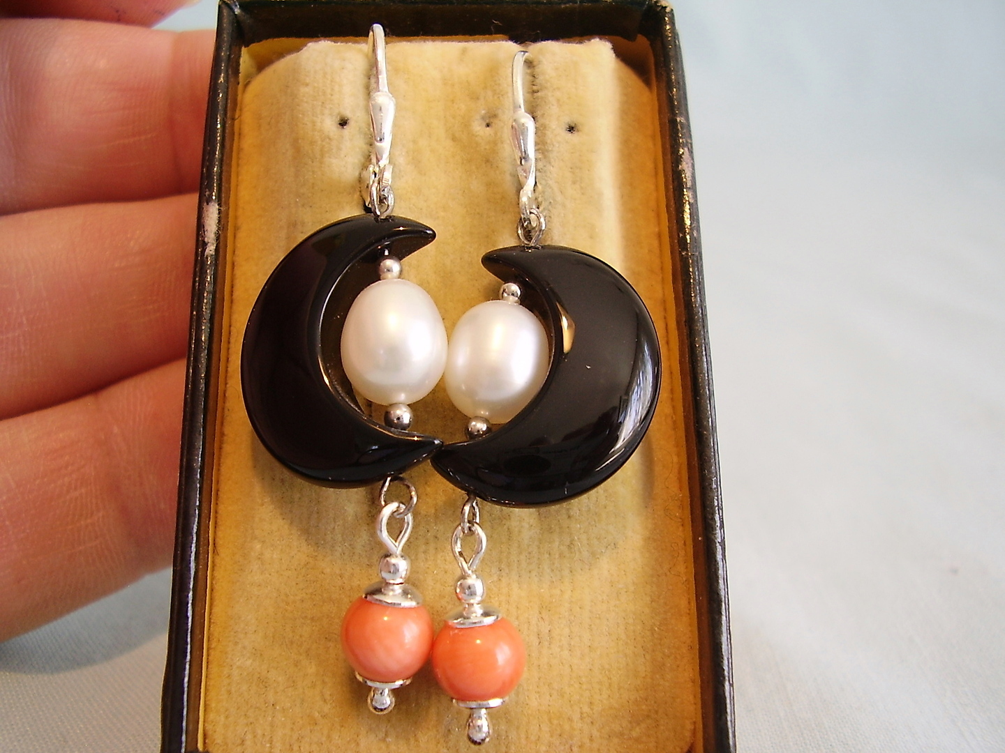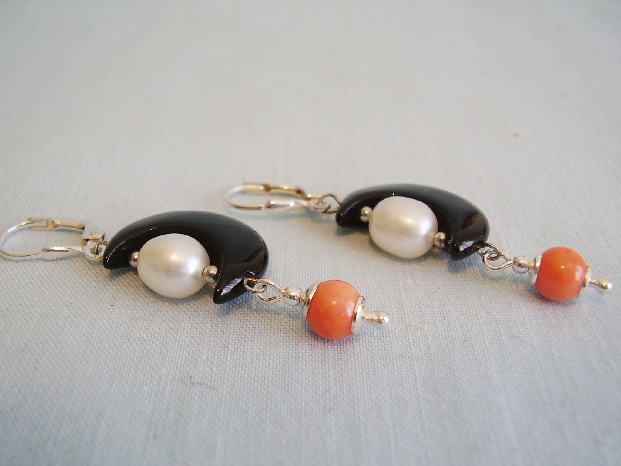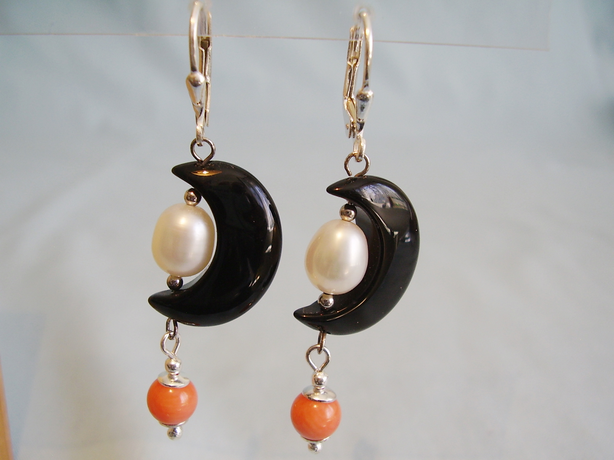 424503. ONYX ØRERINGE MED PERLER + KORAL.
