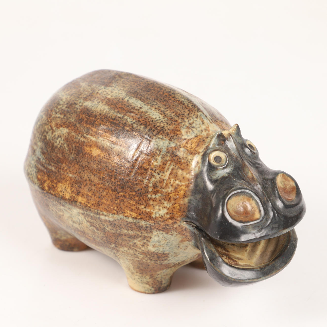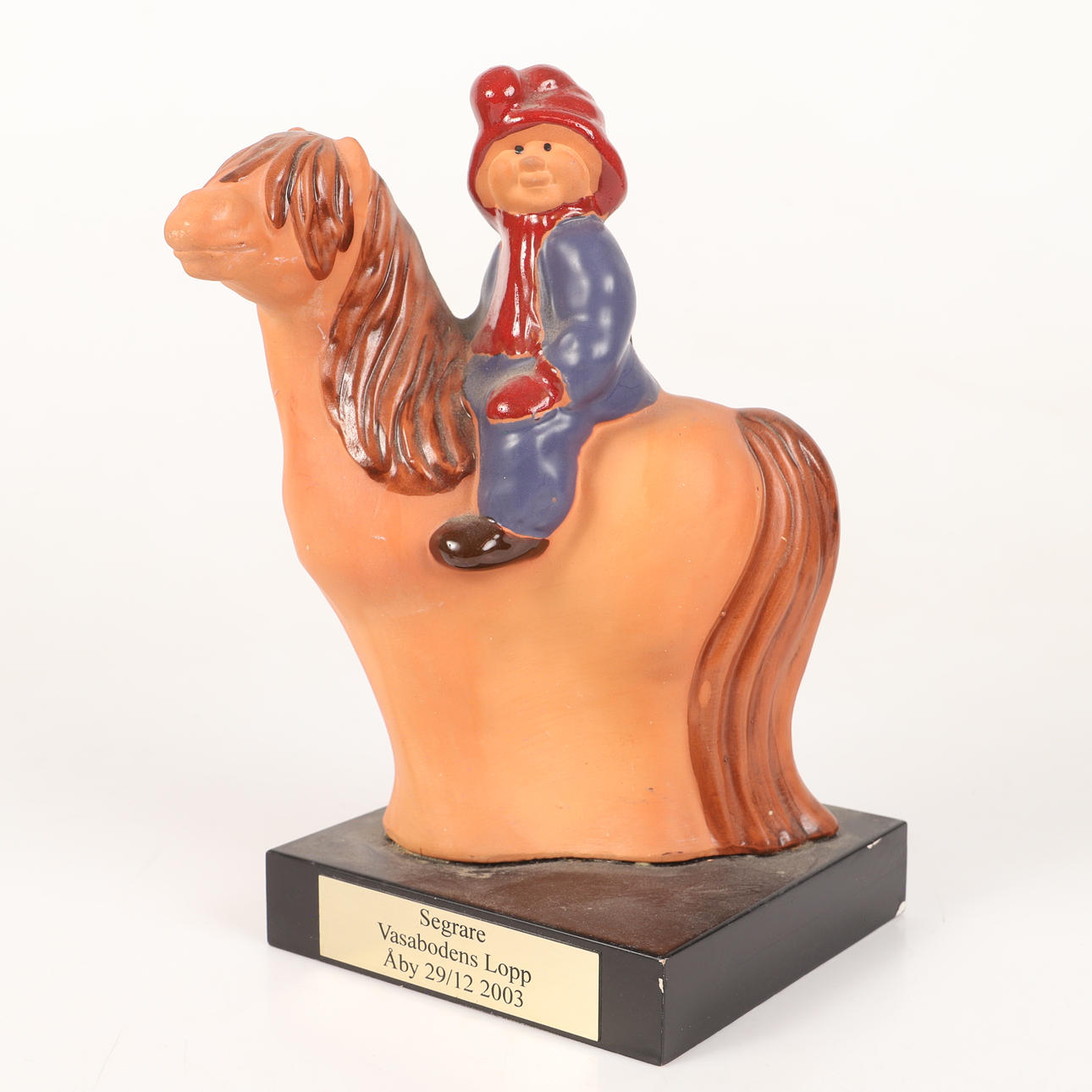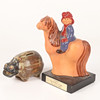 Julemanden til hest, 1. præmie på Åby 2003, ca. 14 x 14, højde 26 cm med sokkel Pengeboks, flodhest, ca. 17 x 10, højde ca. 10 cm.