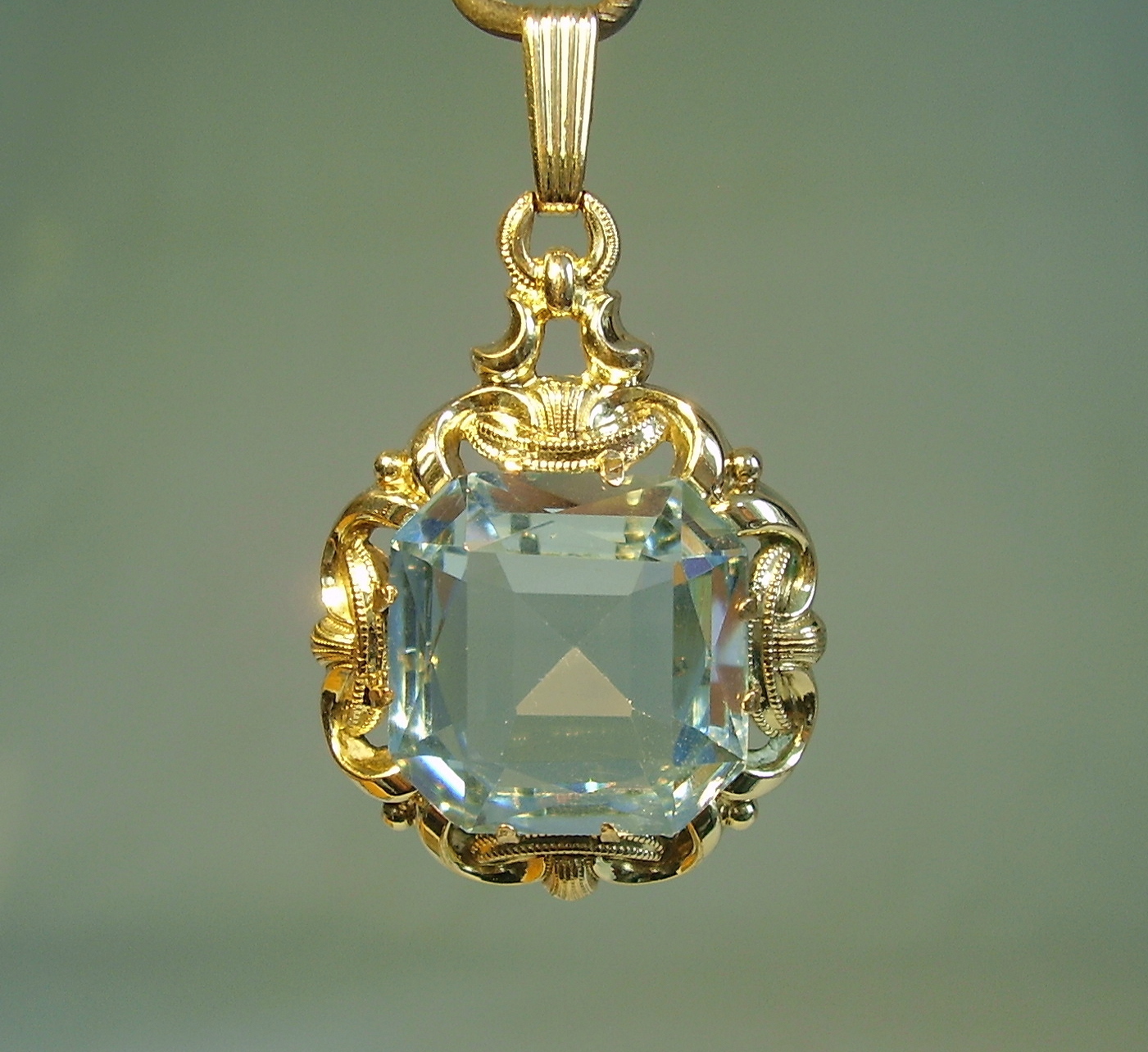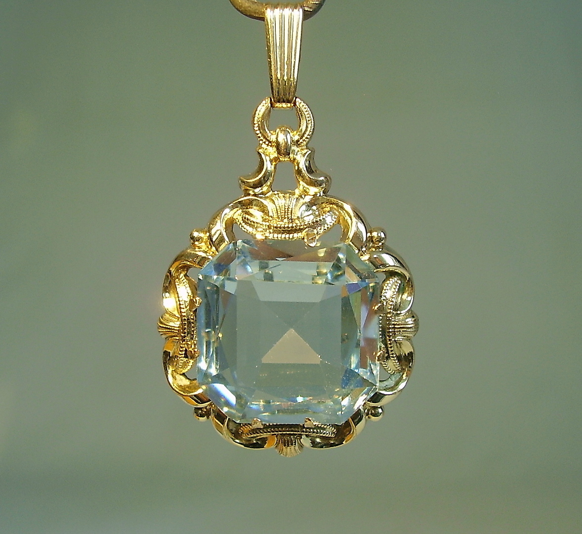 424801. ART DECO HANDSÆNG MED AQUAMARINE SPINEL.