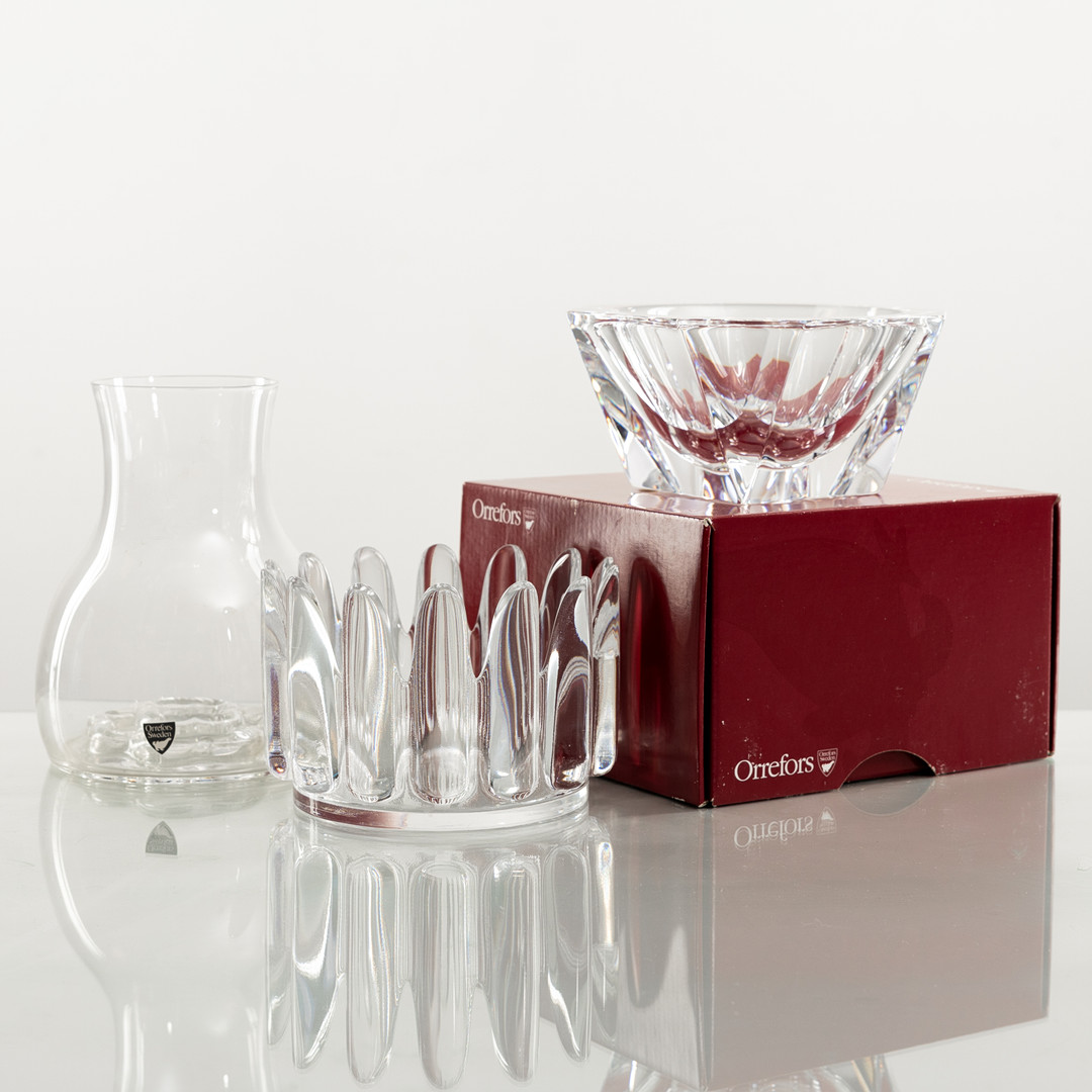 4248274. SKÅLE OG VASER, 3 stykker, glas, Orrefors.