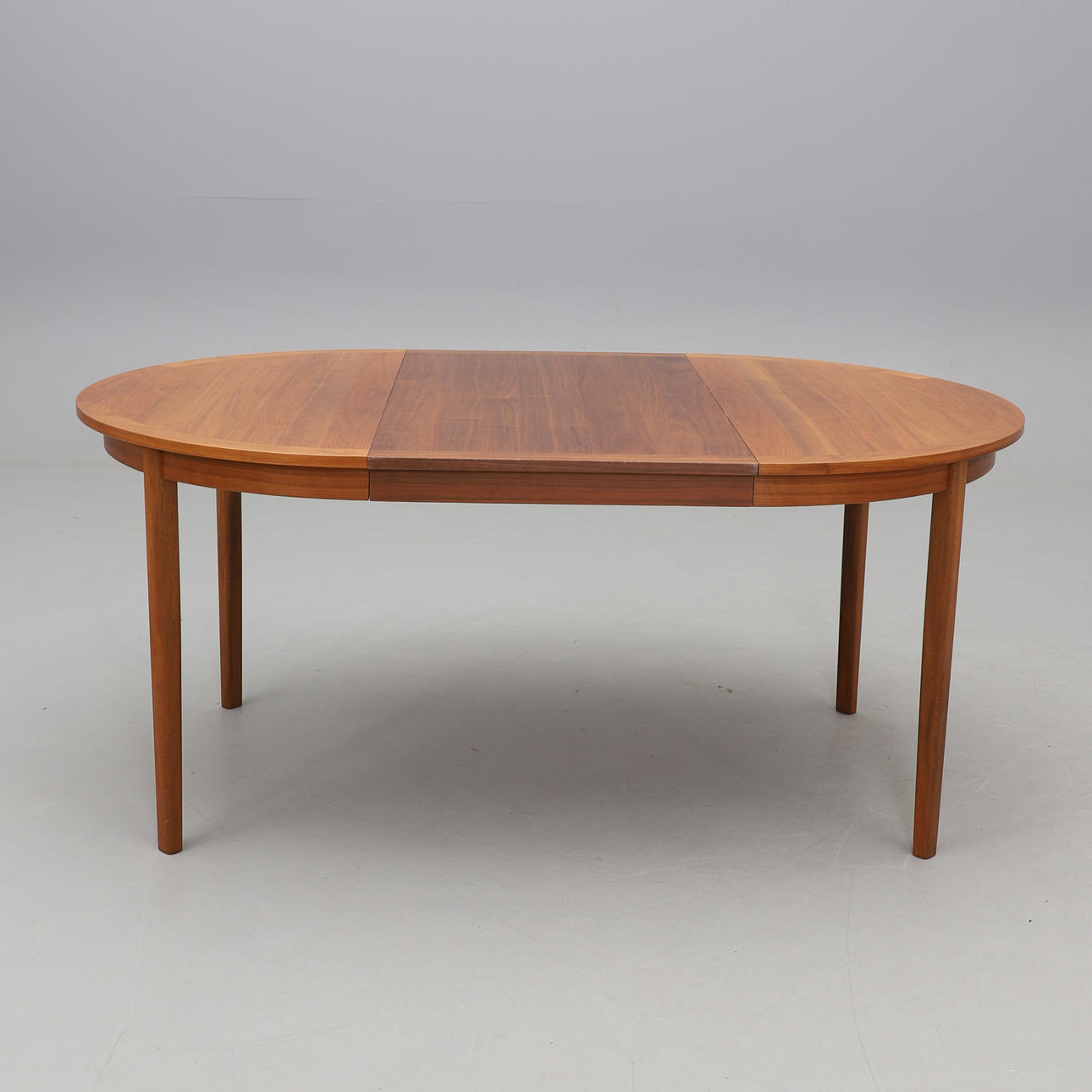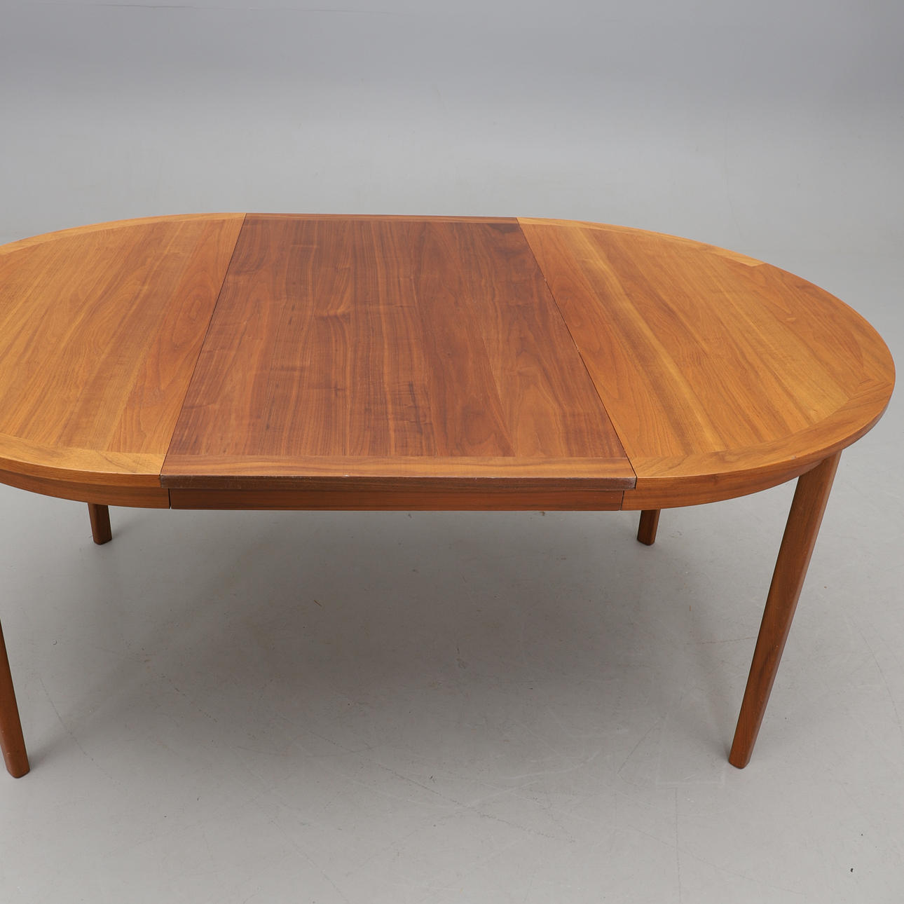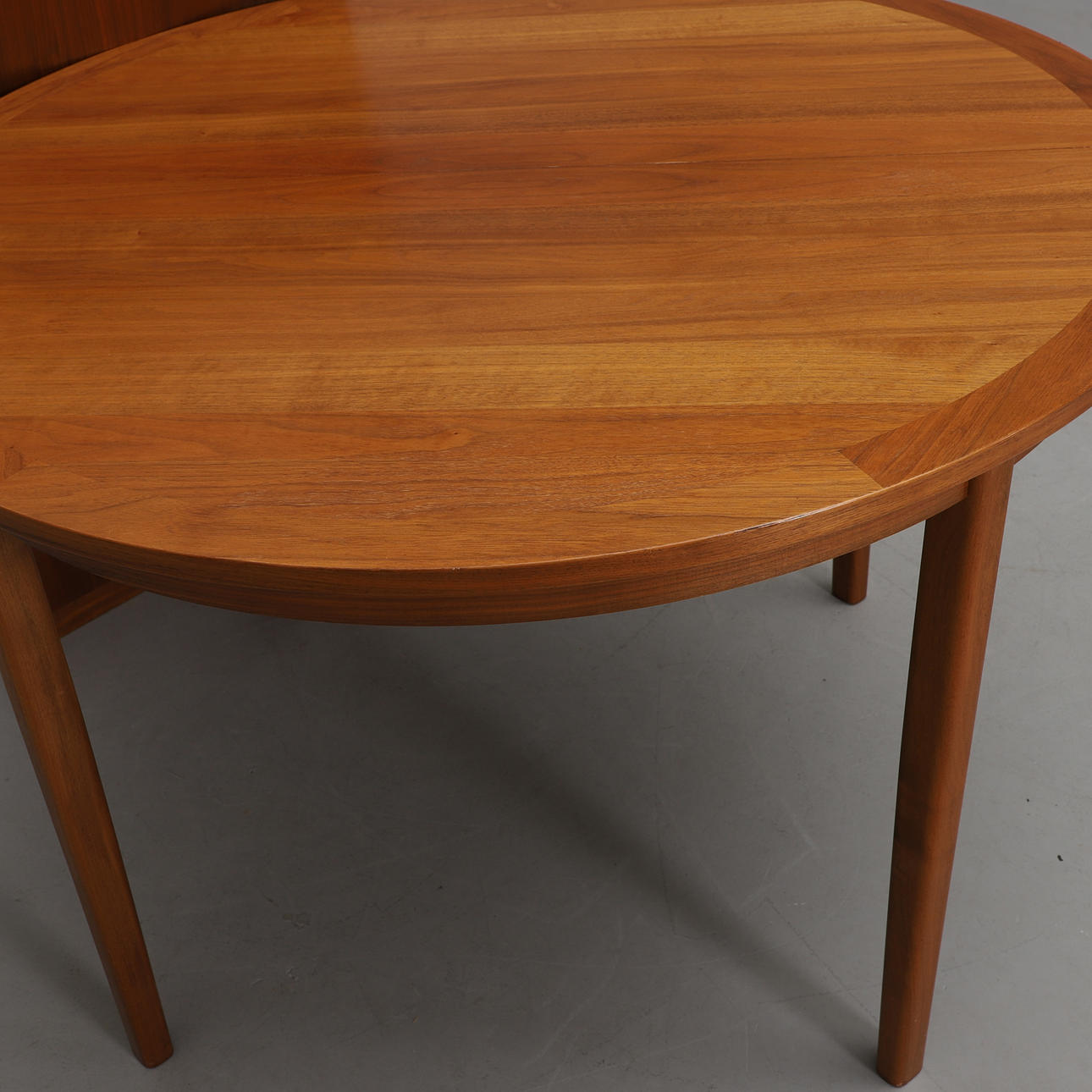 Valnød. Rund delbar skive med indsatsskive på 59 cm. Diameter 110 (længde med indsatskive 169), højde 73 cm.