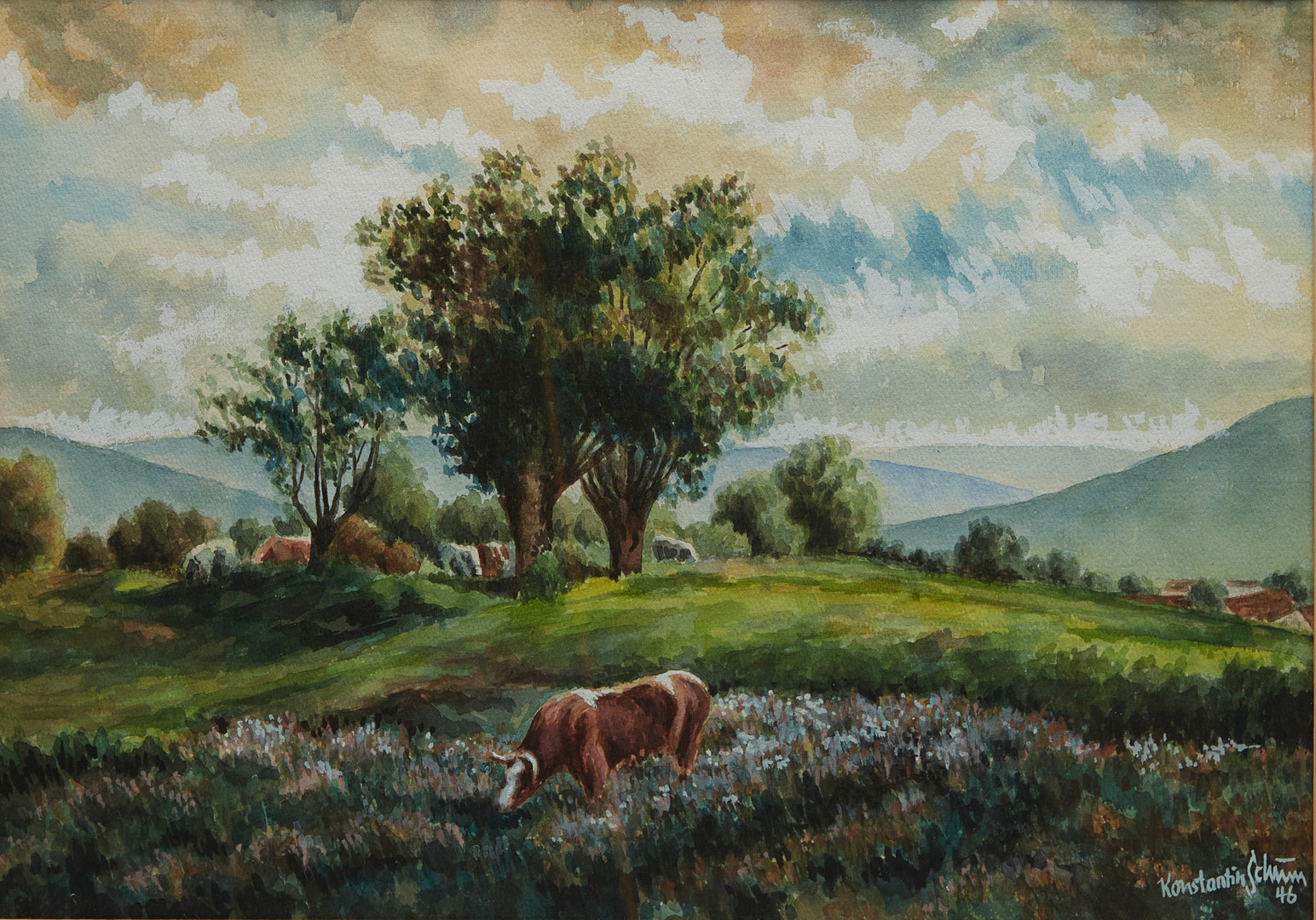 4249585. KONSTANTIN SCHUM. Græslandskab med køer.