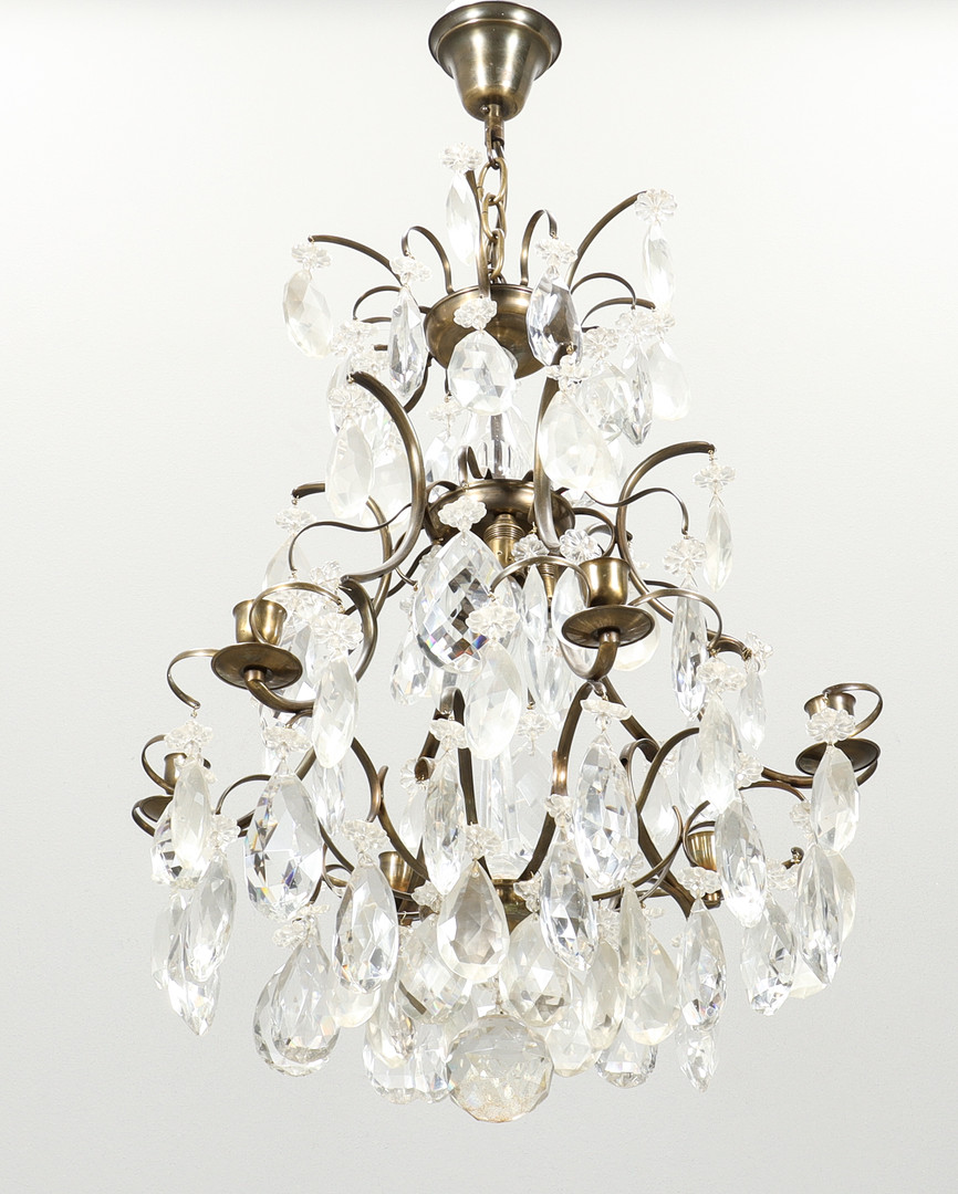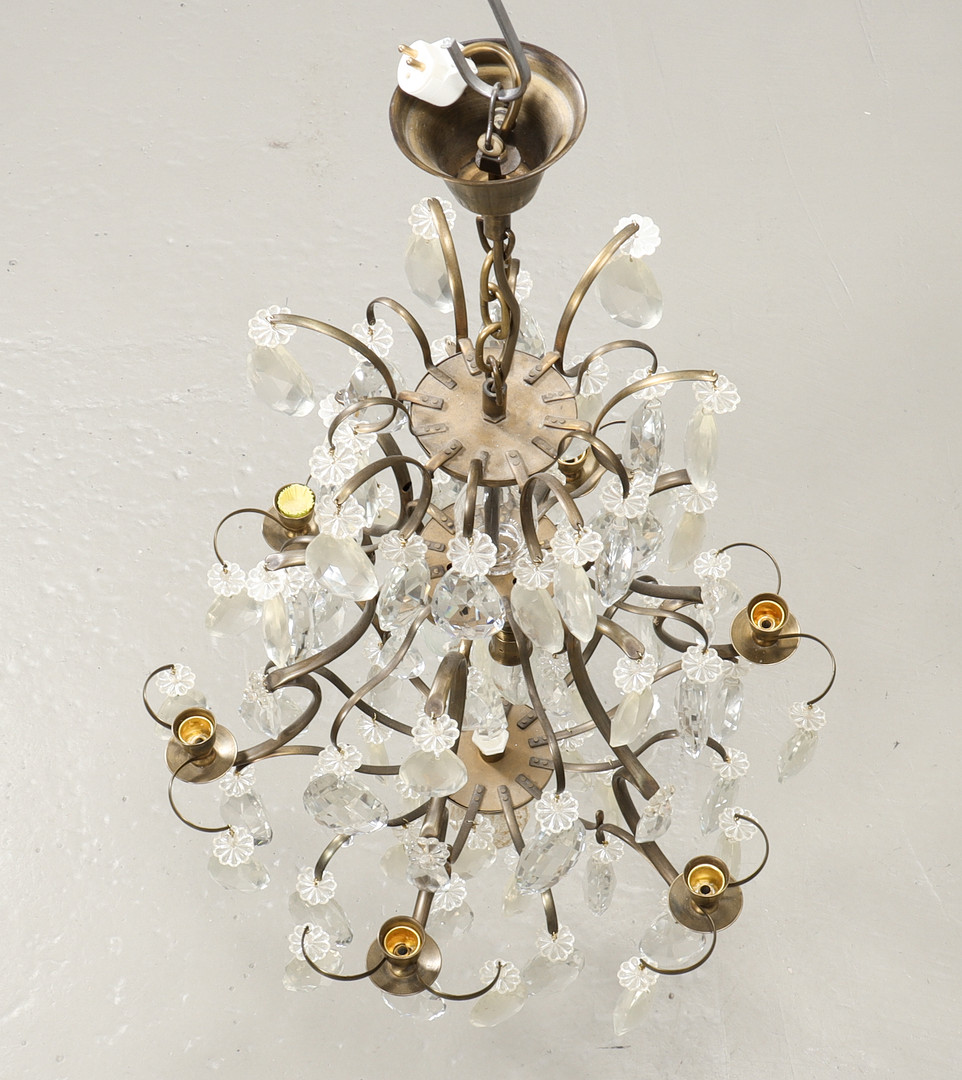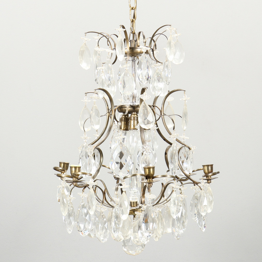 4249605. KRYSTAL LYSEKRONE barok stil, 6 lette arme.