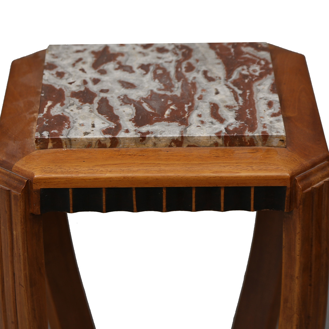 4250424. Art Deco sidebord i valnøddetræ med lodrette riller.