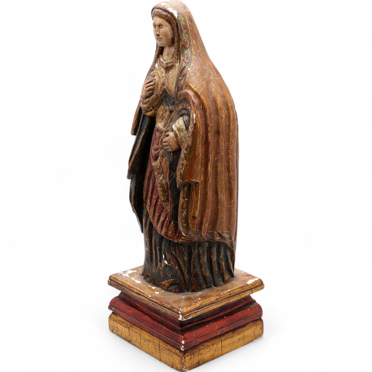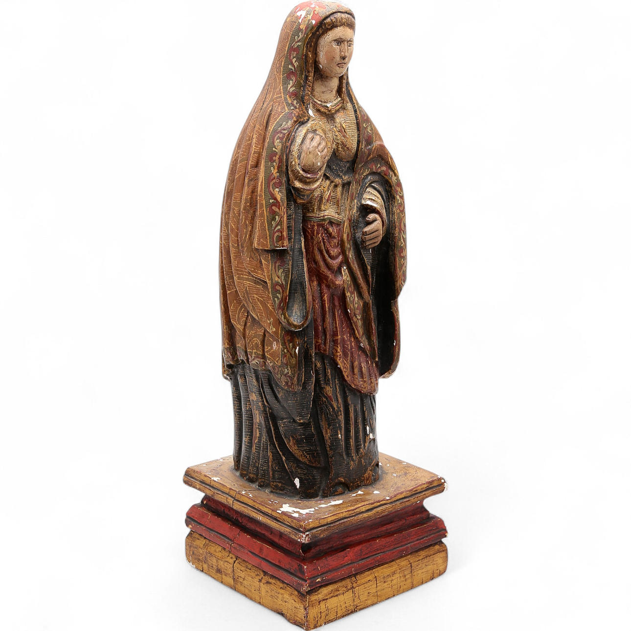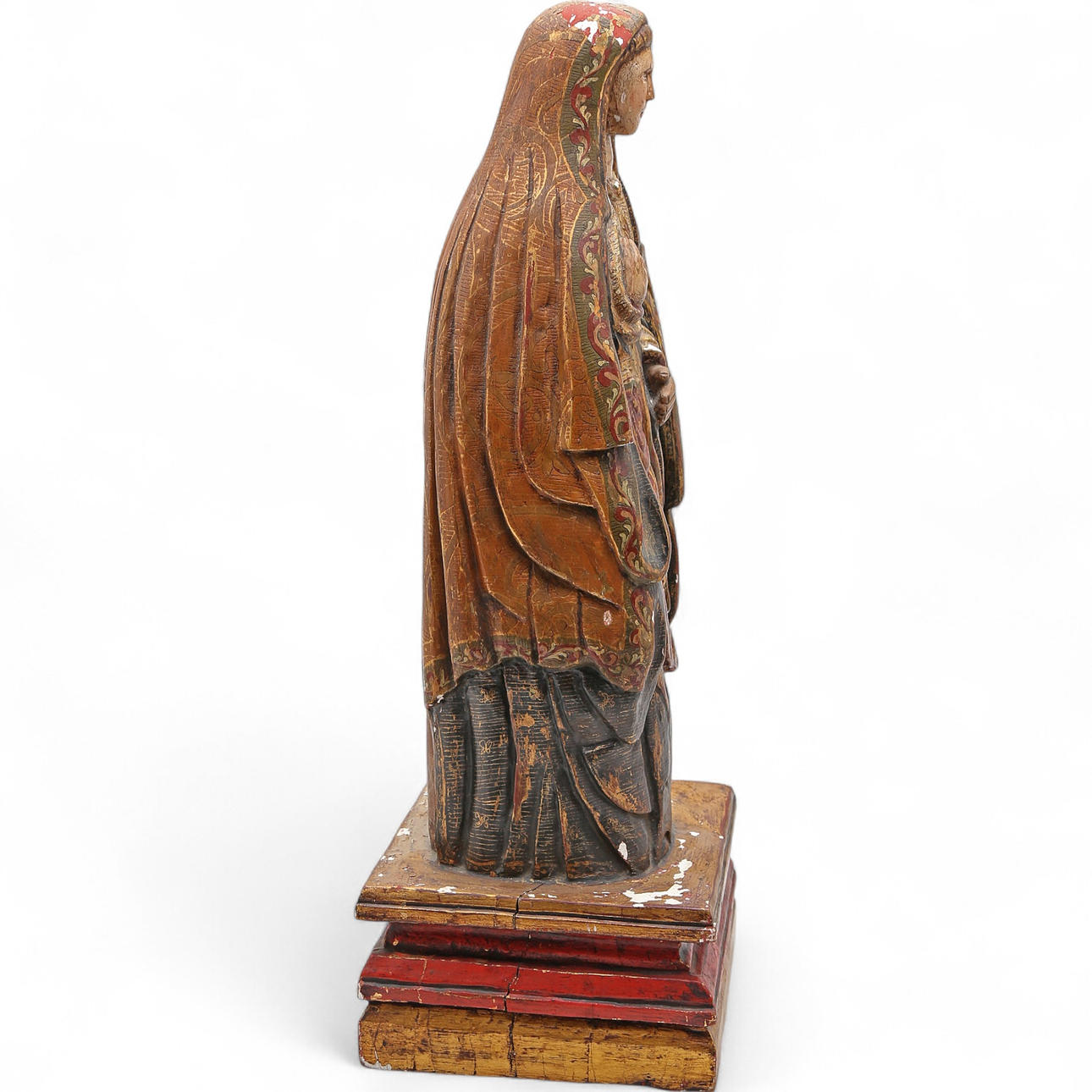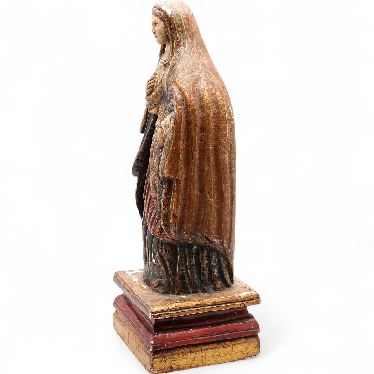 Barok skulptur i udskåret, polykrom og forgyldt træ