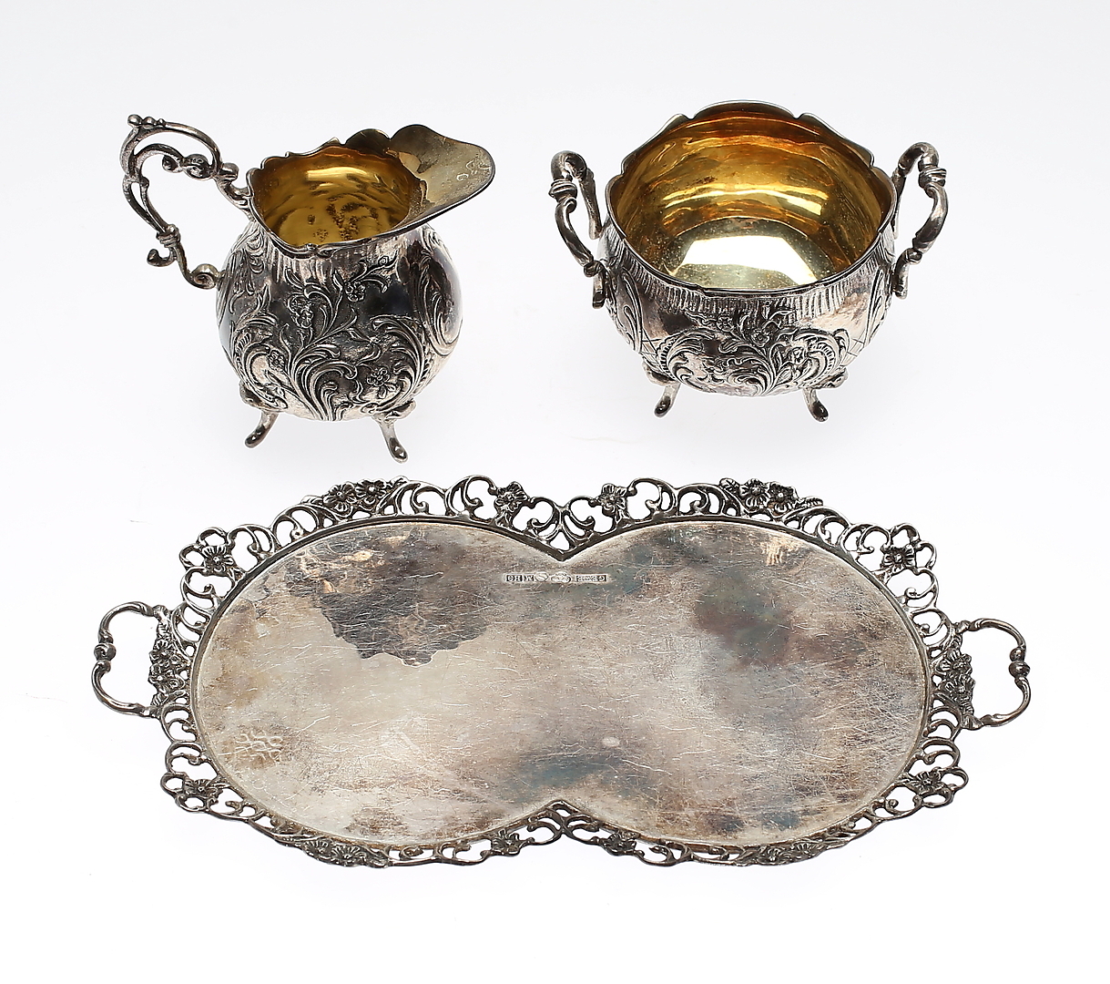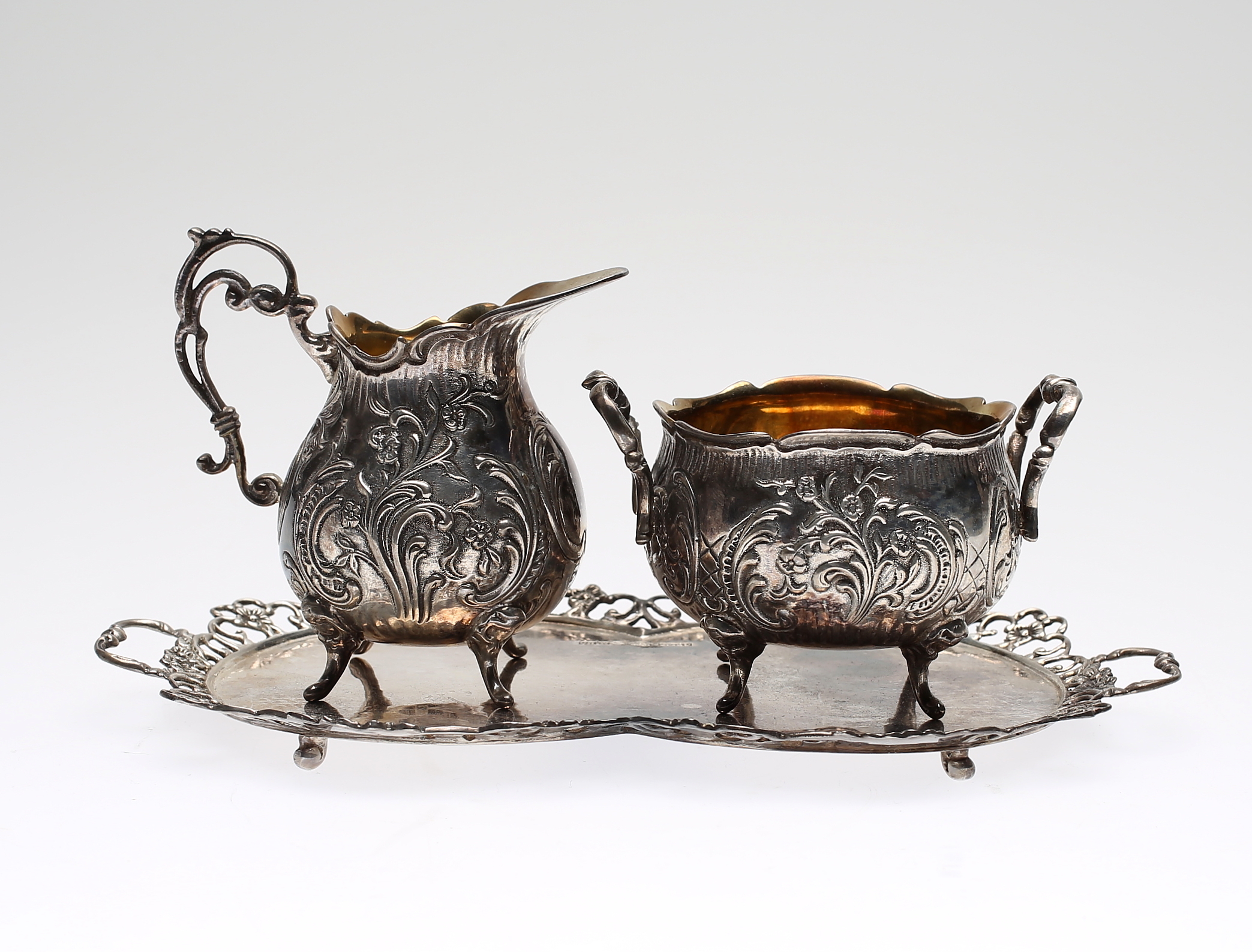 425116. SERVICE, sølv, fløde og sukker, Gewe, 1958, 411 gram.