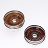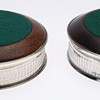 Cirkulær form, med parforeret sider og drejede træindsatser, Carr´s, Shefffield, England 2000 og 2006. H. 3 cm, 13 cm diameter.