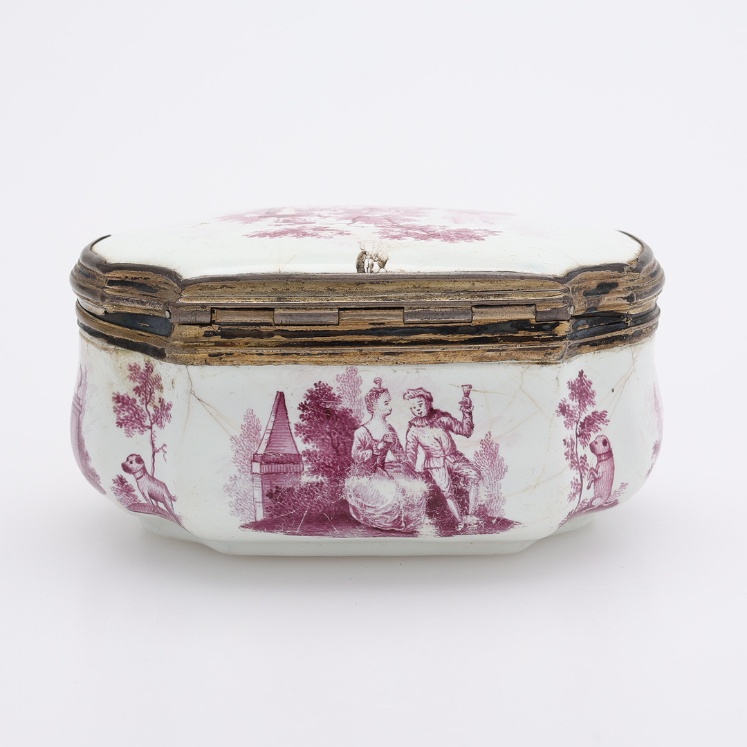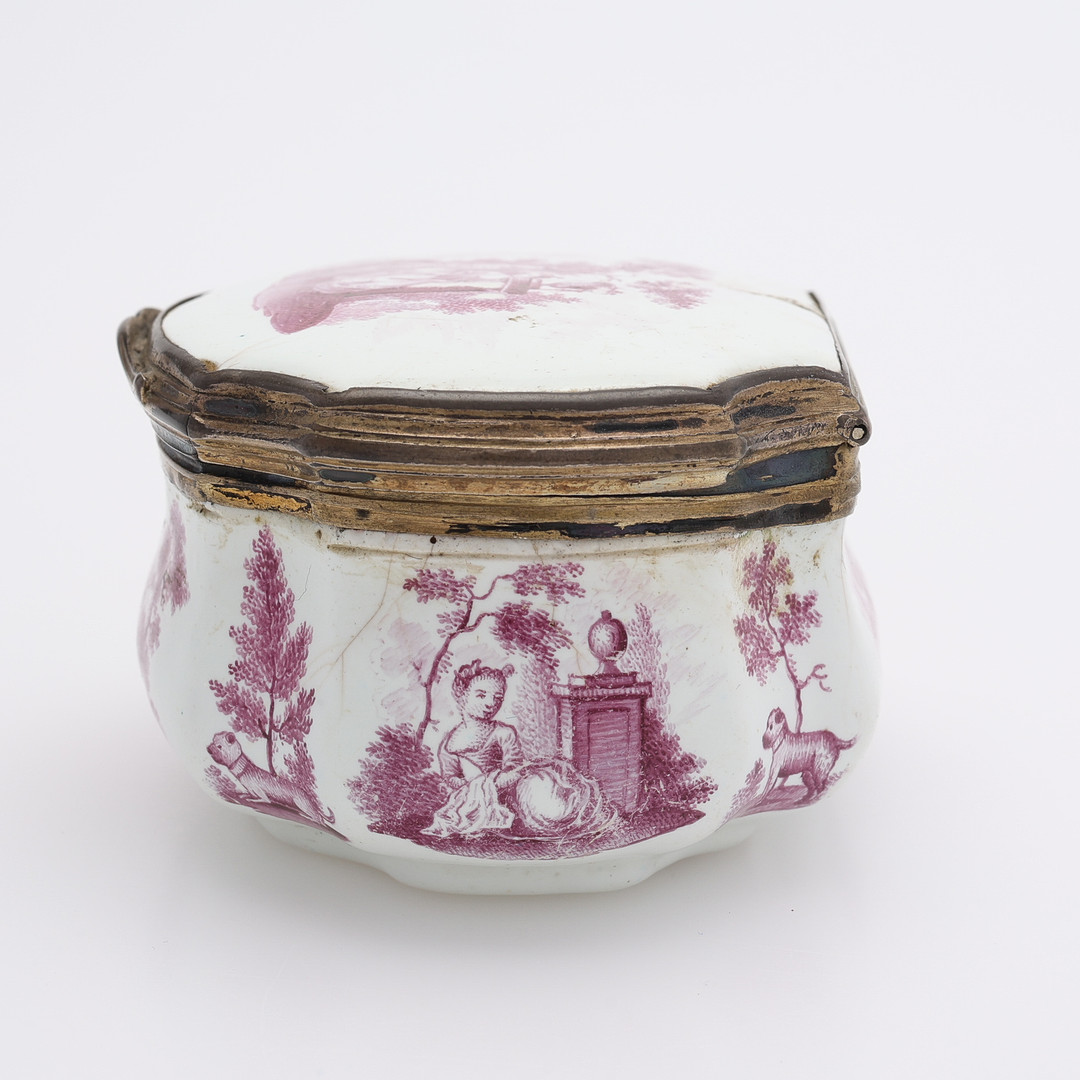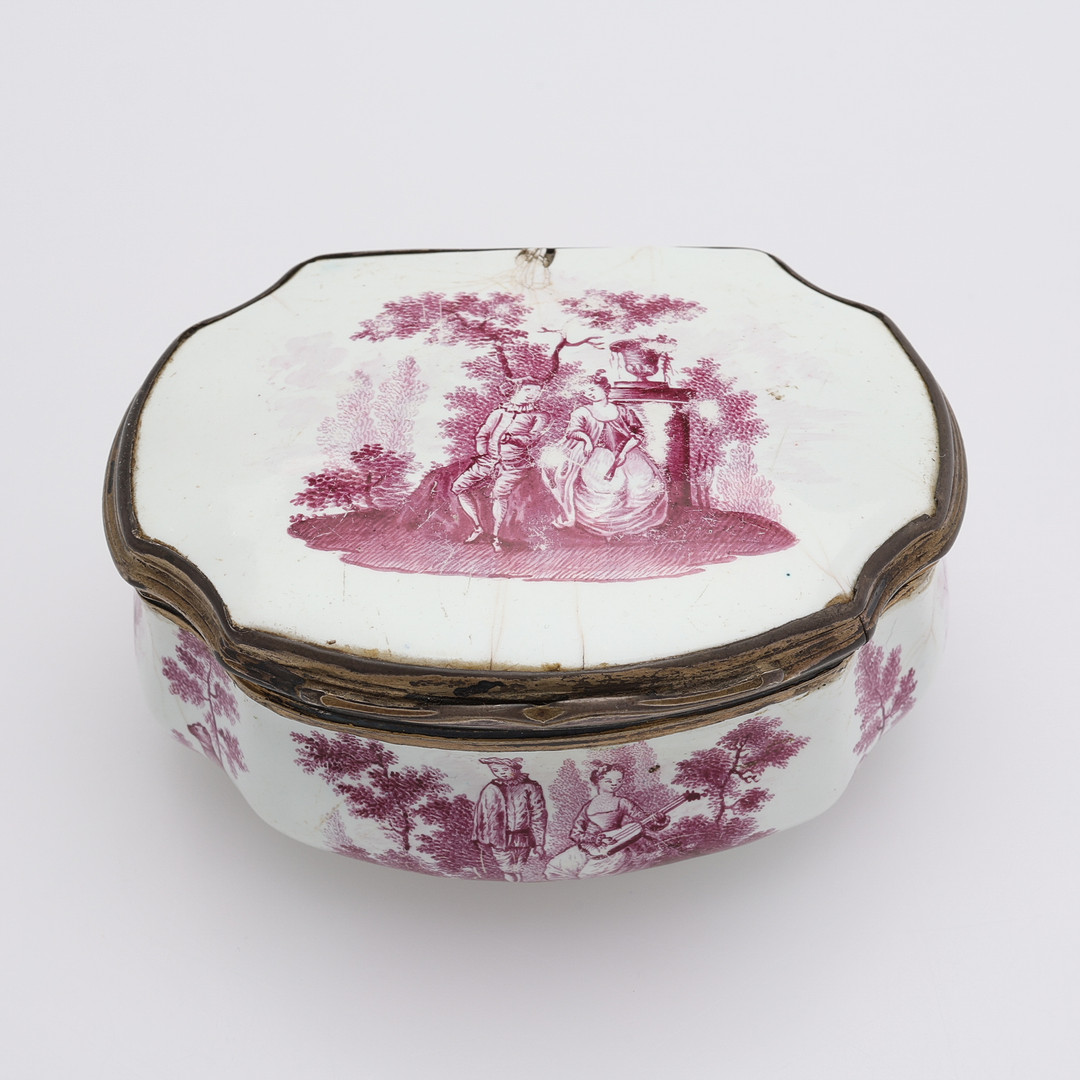 4252439. LÅGKASSE, EMALJE, ROKOKO, 1700-TALLET.