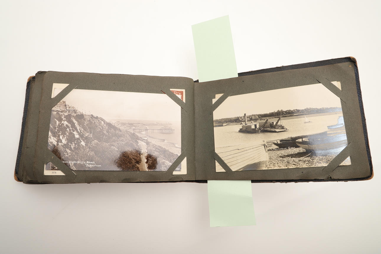 Herunder to små albums med GB- og udenlandske kort (Water Wheel Isle of Man, Cape Town og andre Sydafrika kort, Naval Barracks, Felixstowe Ferry osv.), album med PHQ-postkort og forskellige ephemera. Også med nogle løse ark frimærker.