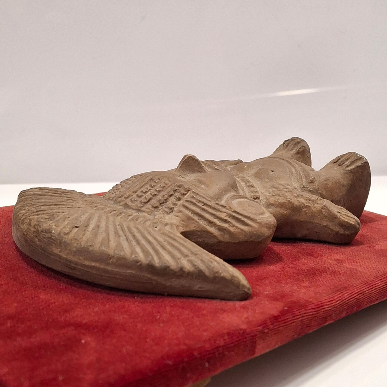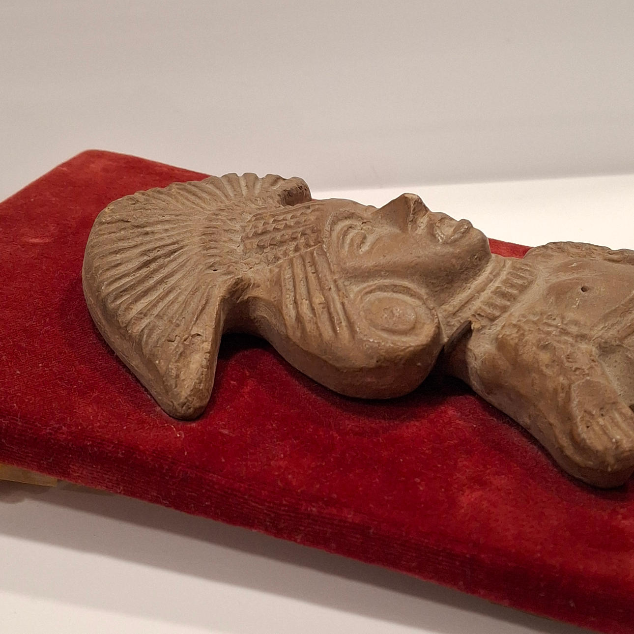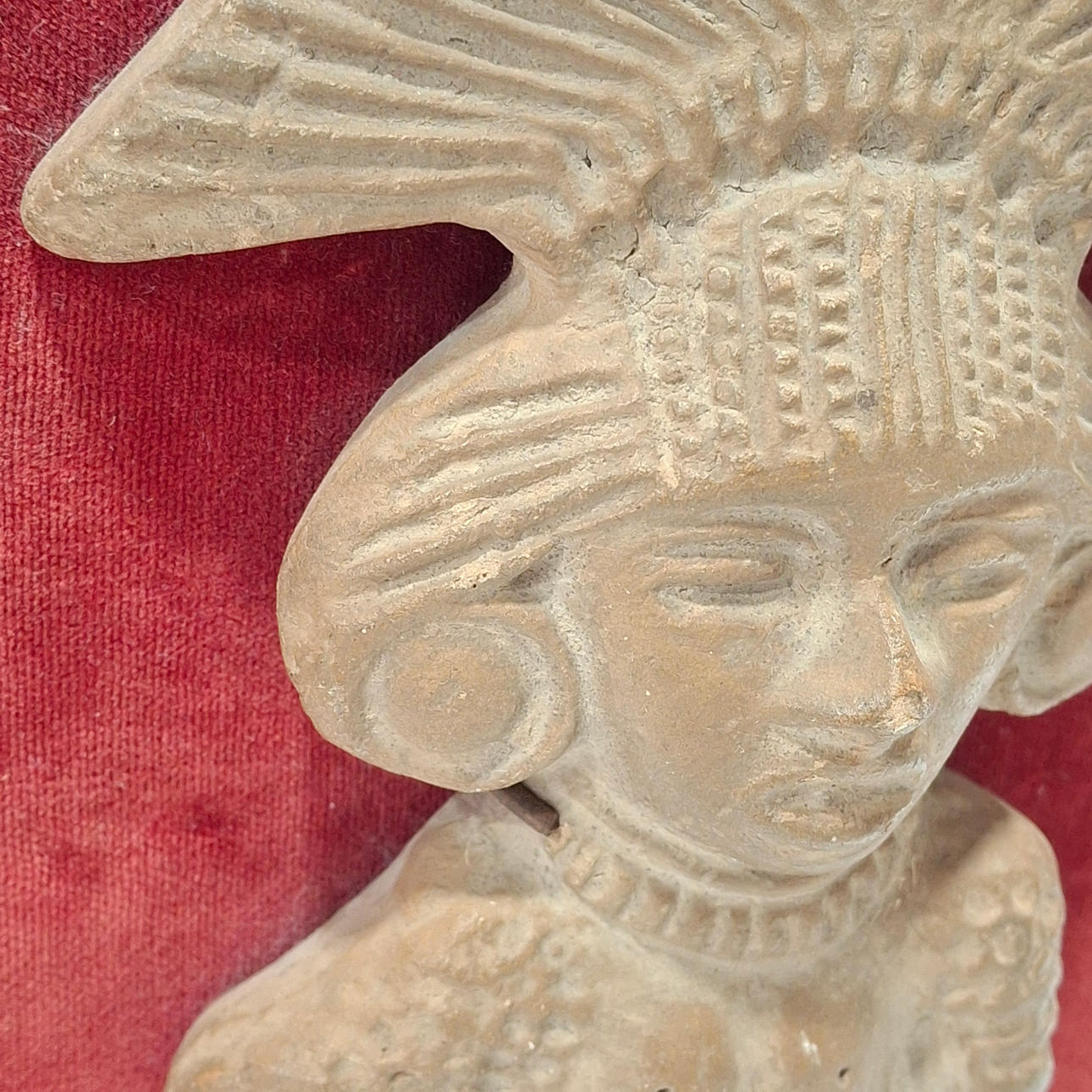 4253045. Maya talismanfigur i terracotta på et loft.