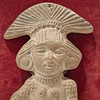 Maya talismanfigur i terracotta på et loft.