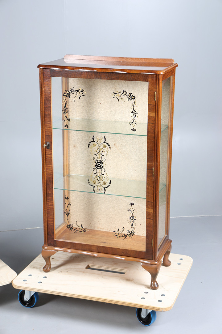 4254086. ET VITRINESKAB, SOFABORD OG SYKASSE. (3).