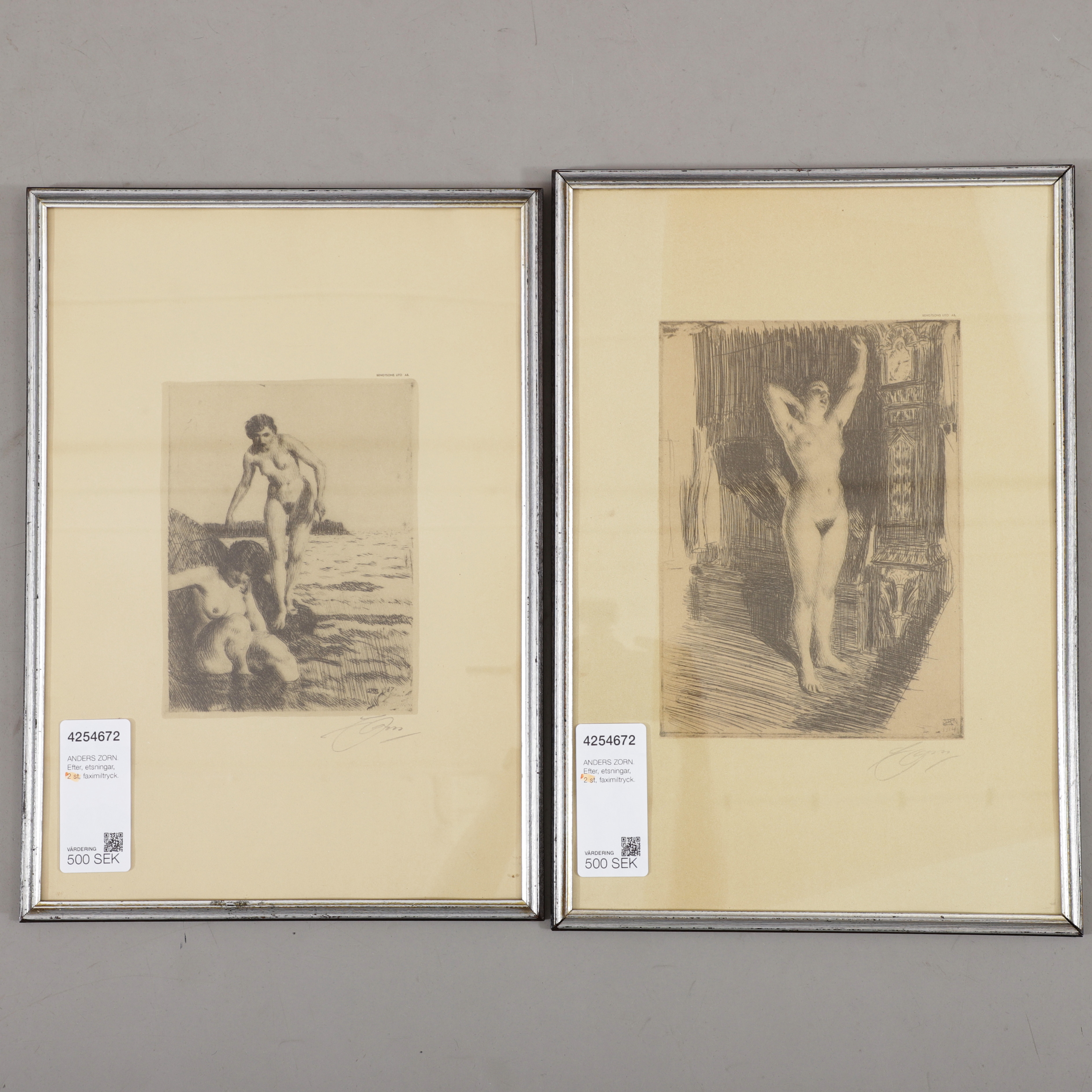 4254672. ANDERS ZORN. Efter, ætsninger, 2 stk, faxtryk.