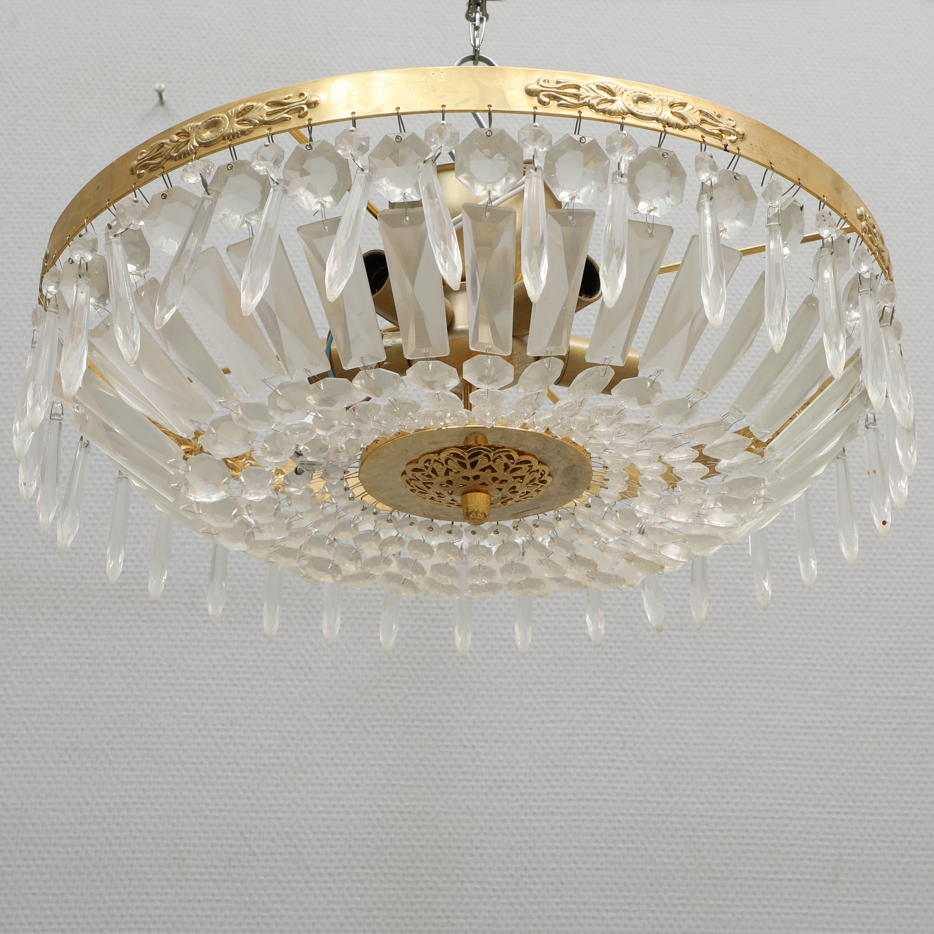 4254682. LOFTLYSEKRONE, loftmodel, messing & prismer.