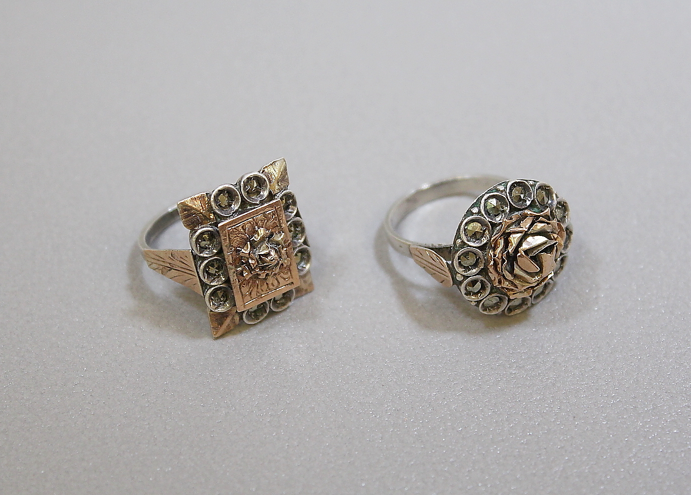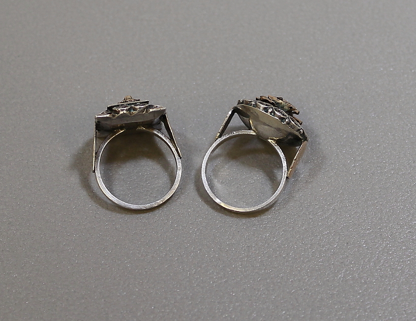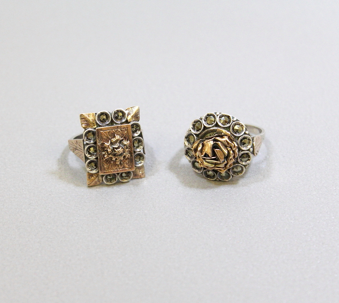 425606. RINGE, 2 sølv med forgyldning og marcasitter.